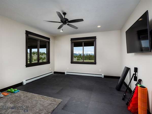 Montana adventures await at this peaceful and private 10-acre mountain enclave, located just 20 min from Bozeman's historic Main Street. Situated on a ridge against a 219-acre conservation easement, this property features unobstructed of the Bridger Mountains, horse barn and additional outbuildings. The home was built in 2020 and features 5,933 sq ft of well designed space. Enjoy stargazing and ever-changing skies from every window while viewing the abundant wildlife that frequents the property, including elk, moose, deer and more. Subject to light CCRs in a gated HOA with no county zoning, this property offers the freedom to pursue your Montana hobbies. 2-stall horse barn with hay storage, pasture fencing and cross fencing. An additional 2- bay 760+ sq ft shop/toy barn with carport at the entry of the driveway. No view or noise impact from I-90. This home features many upgrades including radiant heating and multiple mini split A/C units. Vaulted living room with stone surround gas fireplace, engineered hardwood floors. Office features western mountain views. The gourmet kitchen features GE Cafe appliances, granite counters and a dining island. Dining area accesses covered patio with in-slab radiant heat (no shoveling), perfect for indoor-outdoor entertaining. Adjacent mudroom/laundry area with large pantry, a pet wash, and new washer/dryer. The spacious main-level primary suite features a spa-like primary bath with soaking tub, and large, tiled shower. A 2nd guest bed on main has access to a 3/4 bath. Upper-level large bonus room with walk-in closets and a tiled bathroom offers flexibility as an additional ensuite guest bedroom. Daylight lower level features walk-out to the covered patio with in-slab heat. Flex recreation room, a guest bedroom, a gym and a 3/4 bath on this level. An expansive 1,818 sq ft, 4-bay 5-car attached garage features in floor heat and HRV system. Enjoy the security of a vault lock-off safe/storage room for hobbies/conditioned storage. Property features two 1,000-gallon buried propane tanks, 20-gal min well, a GENERAC backup power system, upgraded windows with custom shades and a Sonos system. Fire mitigation of vegetation and irrigated grounds around the structures. Multiple RV and equipment parking areas. Additional equipment avail for separate purchase. 30 min to MSU, 25 min to Bozeman Health Hospital, 35 min to Bridger Bowl, 25 min to Livingston and blue-ribbon waters of the Yellowstone River. Don't miss the VR Matterport 360 tour!