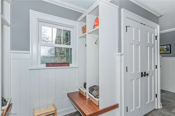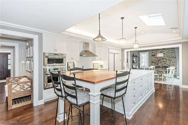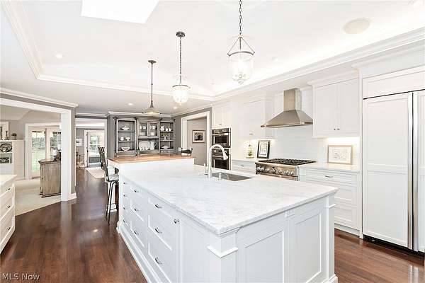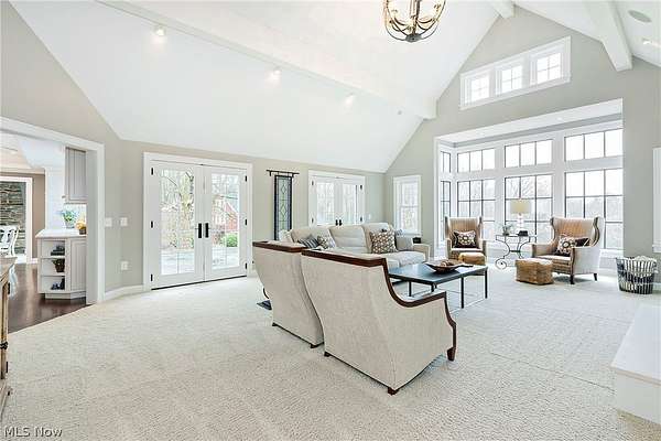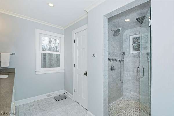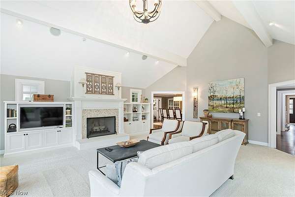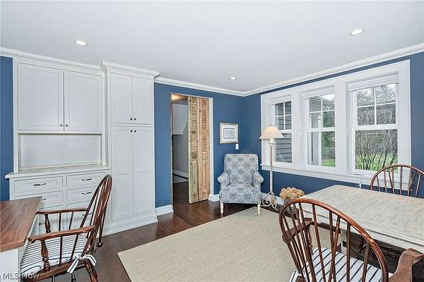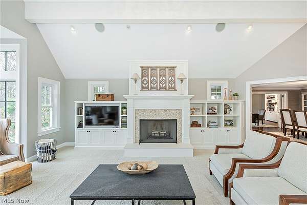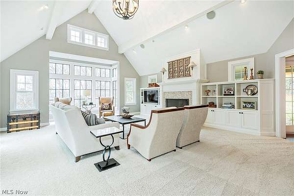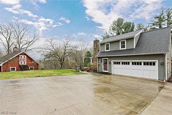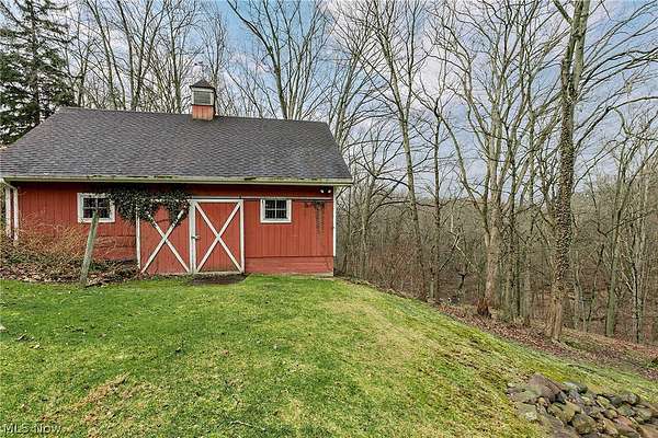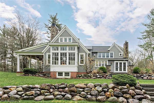 Stunning home and remarkable 7 acre property in the Chagrin Falls Township completely updated with a full renovation & major addition completed by Jordan Construction. Step inside this warm & inviting open entry with hardwood floors leading to private office that connects to the back entry and spacious mudroom off the garage. The amazing gourmet kitchen was completely redone with custom white cabinetry, Carrera marble counters, wonderful center island & stainless appliance w spacious eating area by the cozy fireplace. Step into the spacious & grand great room addition w vaulted ceilings, wall of windows overlooking the gorgeous private setting, double sided gas starter fireplace that also opens on the private covered back porch. Formal dining room with wood burning fireplace opens to 2nd private study or office. 1st floor bedroom suite w full bath perfect for guests (or could be transformed into primary suite). Hallway closets and chic designer powder room - complete the 1st floor. New stairway with custom wood railings leads to the primary suite with another beautiful view of the backyard wooded setting. Full updated bathroom with soapstone countertops, walk-in shower with marble tile and marble flooring. Adjacent convenient laundry room added and 2 large walk-in closets (or extra workout area). 3 additional spacious bedrooms with large closets and hallway full bath with soaking tub, large double vanity with granite counters and walk in tiled shower. Head to the lower level with expanded rec room under the great room addition, plus extra game room and half bath plus plenty of storage. 2013 renovation includes: new hardieboard exterior siding, new windows, all new solid wood interior and exterior doors, new roof, extensive landscaping, exterior lighting, and much more. Setting is enhanced by the original barn with endless possibilities and professionally landscaped and enhanced property to allow flat greenspace and trail leading into the woods. Simply Amazing!!