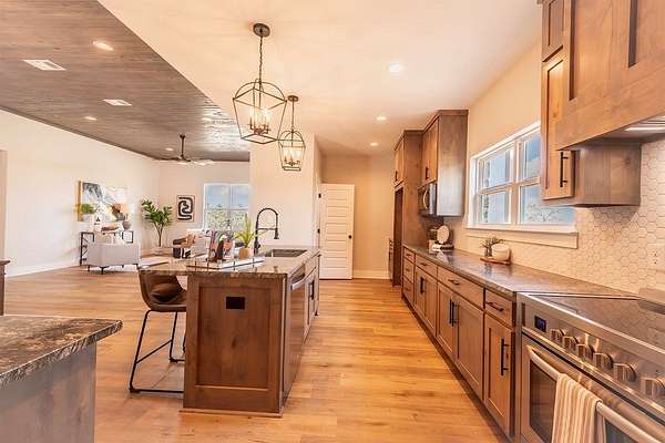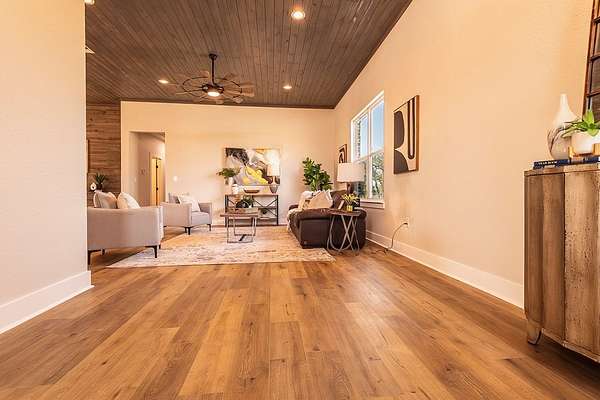 Limited time offer, 2% Buyer concession w/acceptable offer! New landscaping & irrigation! 4 bedrooms!! New construction on 4.3 acres in Reservation Ranch, located in Harper and minutes from Kerrville & Fredericksburg. This sophisticated, 4-bedroom home has unique brick/Shoreline rock (check out the fossils!) masonry exterior on all 4 sides, attached 2 car garage, beautiful sod, plants & trees with irrigation. Grand, stone steps ascend the limestone retaining wall leading to a dramatic entryway. The expansive crushed granite driveway inspires entertaining with abundant off-street parking. Inside, luxury vinyl plank flooring throughout offers easy clean-up. The open floorplan will please everyone with plenty of space. An island in the kitchen functions as a 2nd eating area and offers practicality with the sink & dishwasher. The Primary suite offers a dual vanity AND 2 generous closets! 3 additional bedrooms will sleep everyone comfortably. Soaring 11 ft ceilings in the living room, 9 ft ceilings in rest of house, spacious entryway with solid wood front door. Reservation Ranch is a gated community with central water system, reasonable restrictions. See list of Specifications in Docs