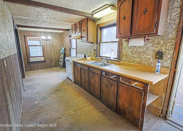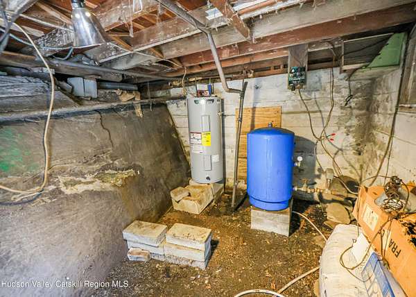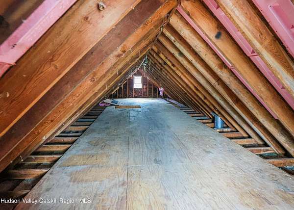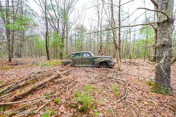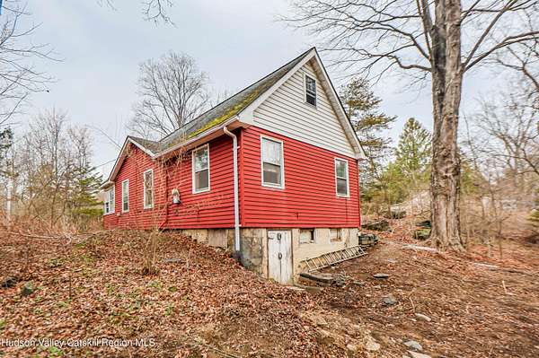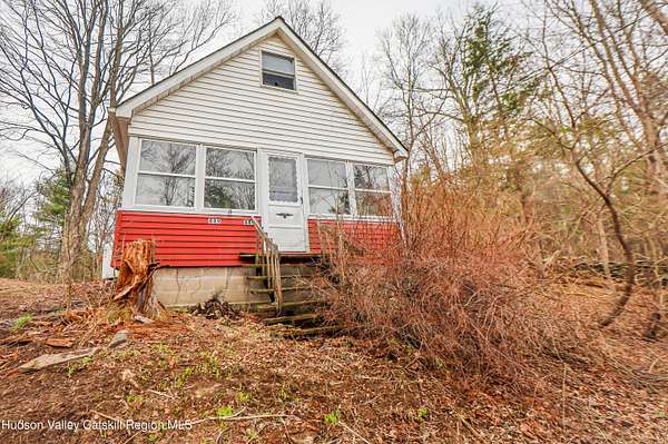 Tucked away on just under 8 peaceful acres, this rustic two-bedroom, one-bath cabin offers a unique opportunity to create your own private retreat. The home features a full, unfinished attic with additional potential. Surrounded by mature trees, striking rock outcroppings, and historic hand-laid stone walls, the property is rich in character. A small stream winds through the land, and there is potential for additional building sites (subject to approvals), offering flexibility for future expansion. Located just minutes from the Ashokan Reservoir, this property is ideal for those seeking privacy, natural beauty, and endless possibilities in the Hudson Valley.