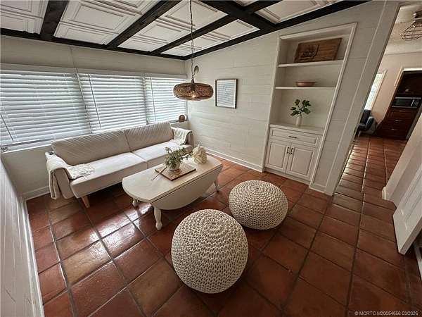 Welcome to your private slice of paradise on the scenic Indian River where over 100' of pristine, ocean-access shore and 1.71 lush acres create an extraordinary coastal escape. This unique, historic rustic home captures the timeless spirit of Olde Florida living. A grand stone fireplace anchors the oversized living room, while expansive windows frame breathtaking views of the intracoastal waters, filling the home with natural light and unforgettable sunrises right from your own private beach. The versatile layout offers a rare opportunity: the rear portion of the home can function as a complete, private in-law suite or income-producing Airbnb. Outdoor living shines here. Enjoy gentle river breezes from screened porches, covered patios, open-air terraces, and outdoor shower. Unwind in your backyard serene Zen garden or relax beachfront as the sun rises over the river in your front yard. A rare waterfront property blending historic charm, privacy, flexibility, and true Florida beauty.