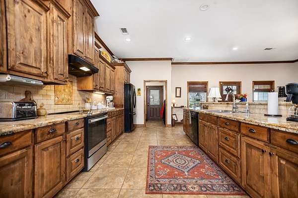 - Blinds, Ceiling Fan(s), Open Floorplan, Pantry, Smoke Detectors, Split Bedrooms