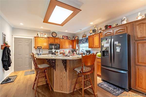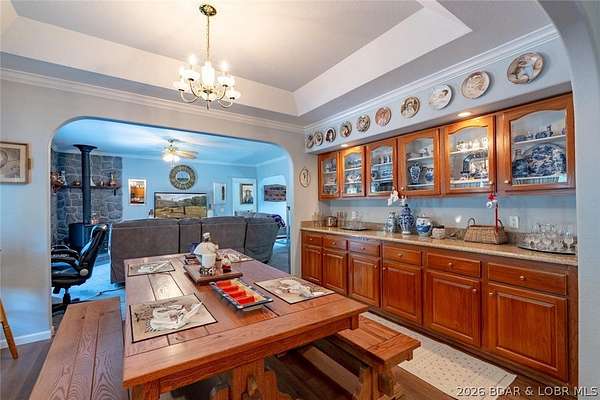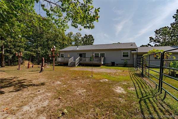 This stunning 3-bedroom, 2-bath, one level living, residence is nestled on a meticulously maintained 10.47-acre lot with 400 feet of highway frontage on Highway 135. The luxurious master suite features a jetted tub in the ensuite bathroom, and a spacious walk-in closet. The home itself boasts high-quality finishes, including bullnose drywall, custom solid oak cabinetry, and granite countertops. Outside, the property is an entertainer's dream. A beautiful atrium door leads to a deck built with Trex decking, perfect for enjoying the serene views of your mature oak trees. The front and back yards are tastefully landscaped with beautiful flower beds and a dedicated garden area. For the hobbyist or business owner, this property is an exceptional opportunity. It features an attached 2-car garage and an additional 23' x 23' workshop powered by a separate 200-amp service from the home. A storage shed and chicken coop are also on site. With its prime location near The LOOP Off-Road Park and The Ozark International Raceway, this property offers both a peaceful country lifestyle and potential for commercial ventures. Plus, it's just a short 20-minute drive to Laurie or Versailles, Missouri.