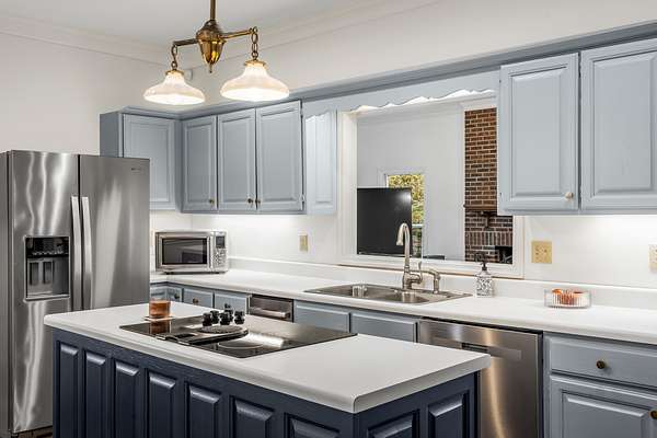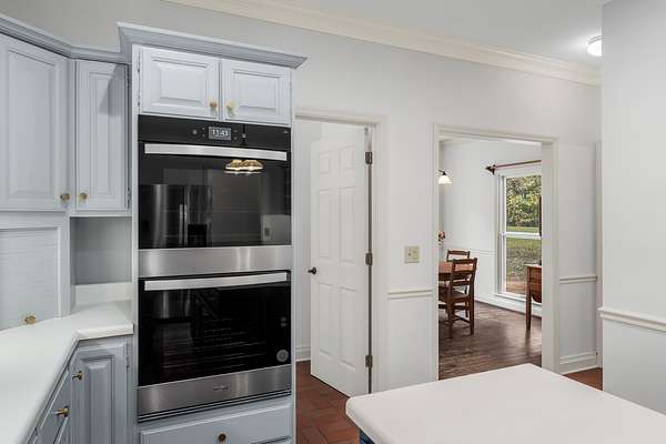 - Built-In Electric Oven, Dishwasher, Disposal, Double Oven, Electric Range, Microwave, Refrigerator, Stainless Steel Appliance(s), Trash Compactor
