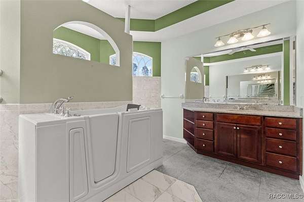 - Bathtub, Dual Sinks, Fireplace, First Floor Entry, Jetted Tub, Main Level Primary, Pantry, Primary Suite, Separate Shower, Sliding Glass Doors, Solid Surface Counters, Split Bedrooms, Tub Shower, Walk In Closets