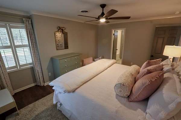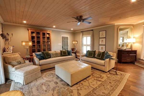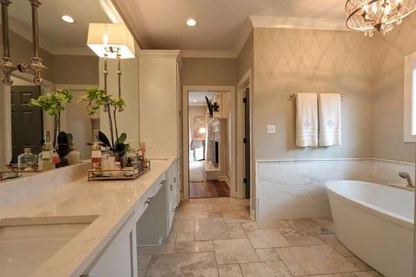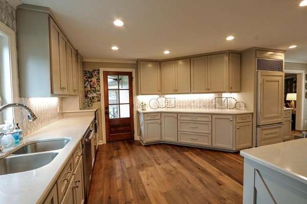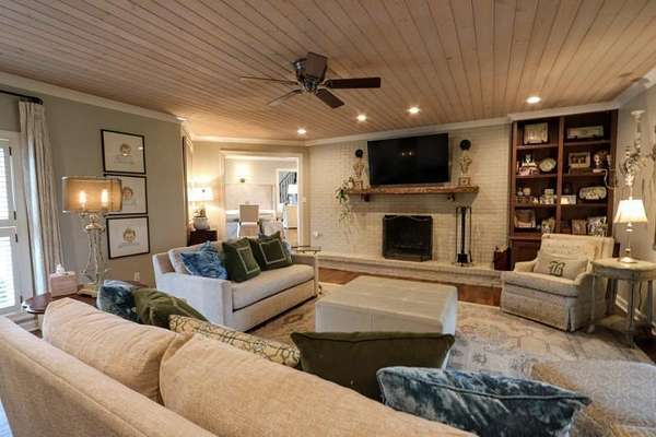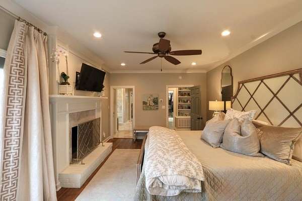 Great family home located on 2nd largest lot of 1.5 acres in Oak Meadows neighborhood. Completely renovated in 2018 by Tony Miles with new plumbing and electrical, windows and doors. New roof in 2025. This 4 bedroom, 3.5 bath home features a spacious 1st floor primary bedroom w/gas fireplace, custom mantle w/TV hookup and French doors leading to side yard. Primary bath boasts free standing tub, fully enclosed double shower, heated travertine floors, large walk-in closet with custom cabinetry with connecting laundry room. The amazing kitchen has subzero panel ready fridge and freezer, Kitchenaide ice maker, quartz and marble countertops (throughout the home), double ovens, and gas stovetop. The large family room has a wood burning fireplace. Wood floors run throughout the home and