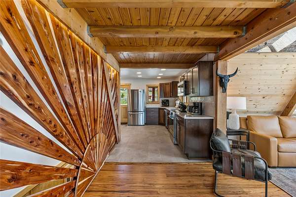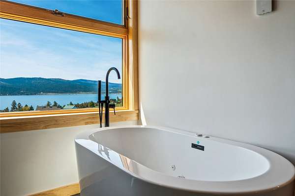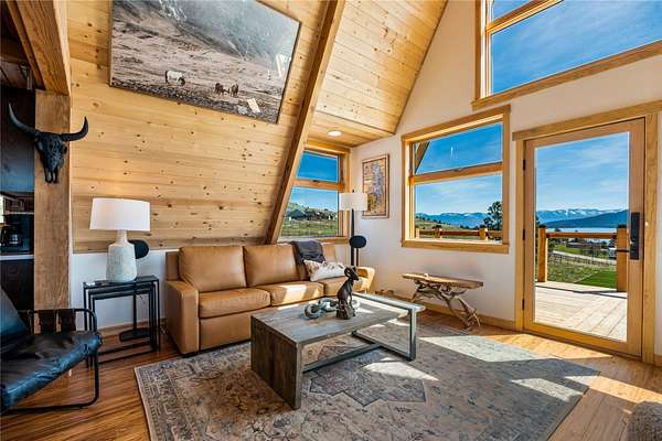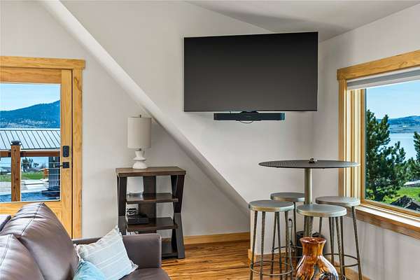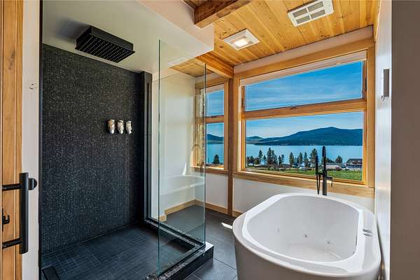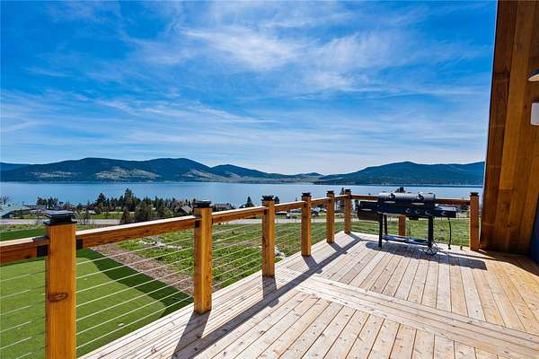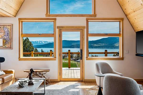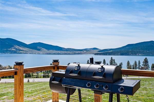Luxury Flathead Lake retreat on 4+ acres with stunning views, minutes from a public boat launch. Property includes a 3-bed, 3-bath main home plus a separate 1-bed, 1-bath studio. High-end finishes throughout: granite, tile, eucalyptus floors, custom cabinetry, high-end windows and doors, luxury furnishings, Bosch appliances, spa-style bathrooms with smart toilets, and Sonos audio. Smart-home features control heat, locks, hot tub, and stereo. Enjoy expansive wooden decks with cable railing, a daylight walkout basement, stamped concrete carports and walkways, putting green, hot tub, and four 48-amp EV chargers. Two separate lots with room to grow, shared well with new pump, no HOA. A Top 1% rated Airbnb in the Flathead fully booked and great income, offering 7 total beds. Book a private showing today.