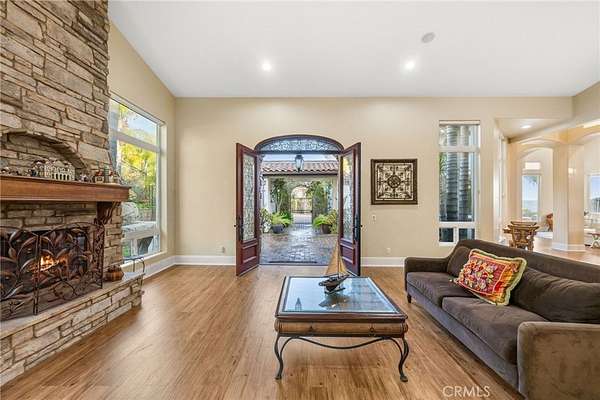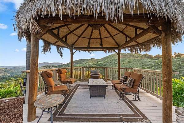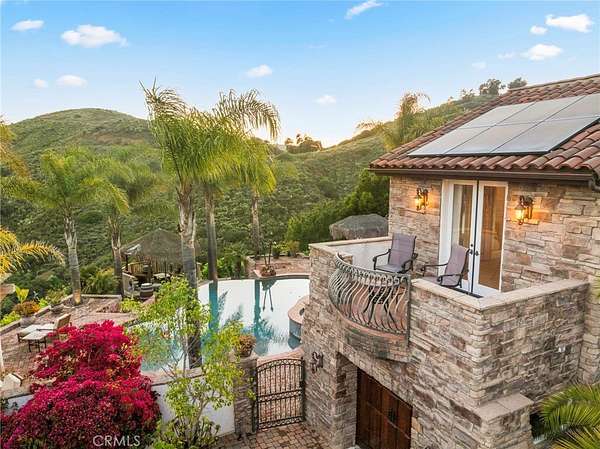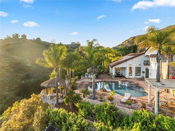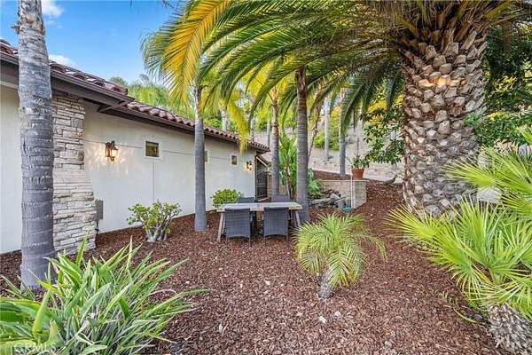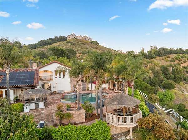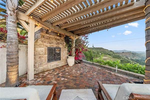 The backyard has a private infinity edge pool, raised spa, forever views all the way to the ocean, outdoor fireplace, palapa BBQ island, and lots of sitting areas.