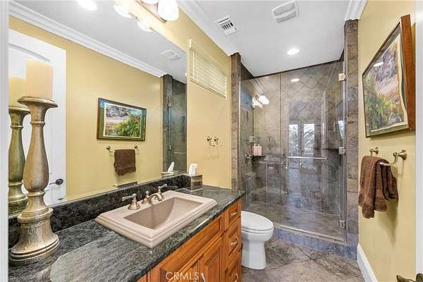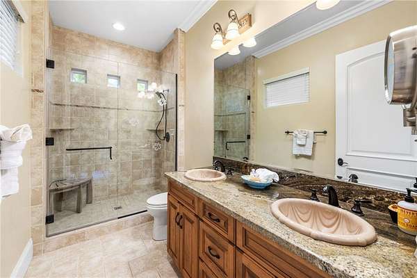The main house guest bedroom has a walk-in closet, private bath, and its own private patio.