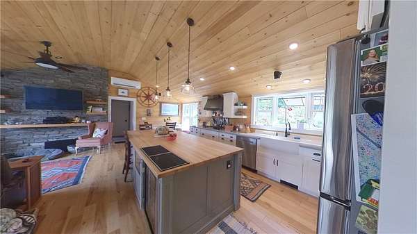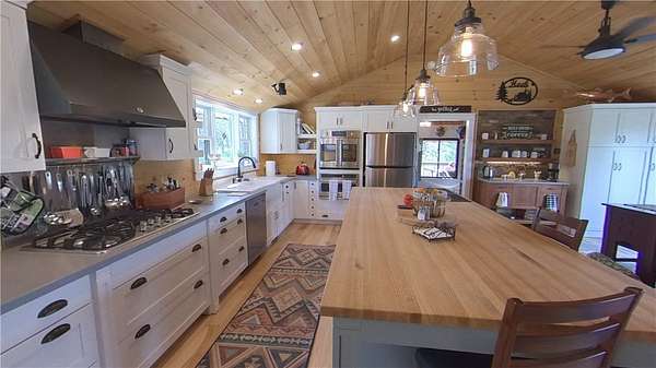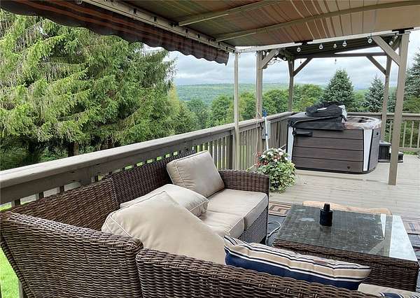 Welcome to Shade Tree Acres: Private escape at the top of rolling hills with incredible views for miles, this beautifully updated turn-key home is something special! --- Every inch of the Greatroom has been remodeled to the highest standards. Gorgeous butcher-block island, high-end craftsmen cabinetry, top-of-the-line appliances - a kitchen both inviting and a chef's dream. Tongue-in-groove with stone facade, wood stove, bright breakfast nook with comfy living room area - the greatroom is the real heart of this home. --- Two bedrooms and remodeled full bath, plus tiled mudroom round out the upper level. The lower level is completely handicapped accessible, with beautifully tiled full bath, 3rd bedroom, large den PLUS a large workshop, utility room, laundry AND additional storage / wine cellar. --- The gem of the property is the manicured rolling open and wooded acreage. Plenty of wildlife for animal lovers or hunting enthusiasts. Snow mobile, trail ride, hike or even just enjoy the views from every vantage on the wraparound deck. --- Multiple covered outdoor seating and entertainment areas, relaxing hot tub with top-shelf views, lower patio with bar counter area PLUS outdoor shower after long muddy days in hunting blinds or atv-ing. Several firepits and quiet oases throughout the 28+ acres. --- The garage has 1 oversized stall with workshop area, electric panel & woodstove, 1 stall for vehicles/equipment, plus a large 2nd floor storage area. --- The 6-stall pole barn offers covered storage with subpanel and lights. Wood shed, potting shed, and pretty flower and veggie raised beds freckle the backyard. --- Less than 3 miles to 528 acre Lyon Brook State Park, this very special property worthy of seeing in person. Don't miss out on this secret hideaway - schedule your private showing today!