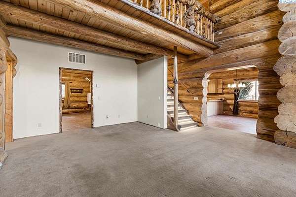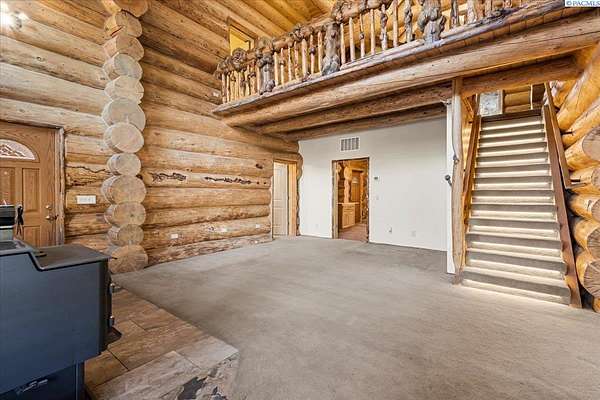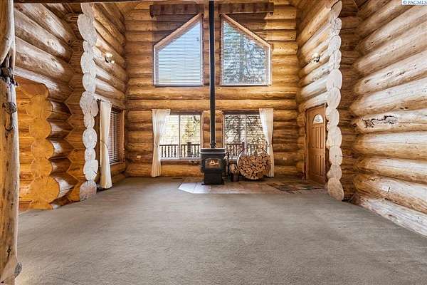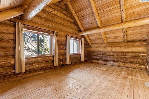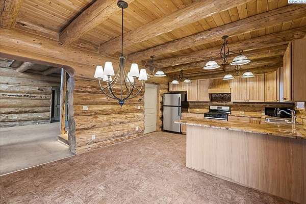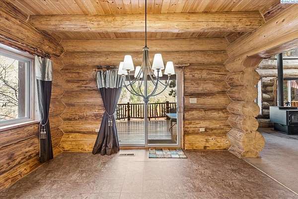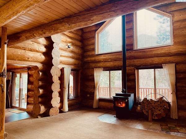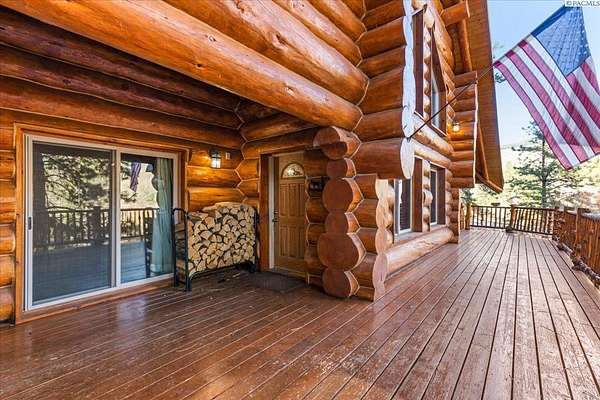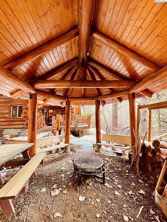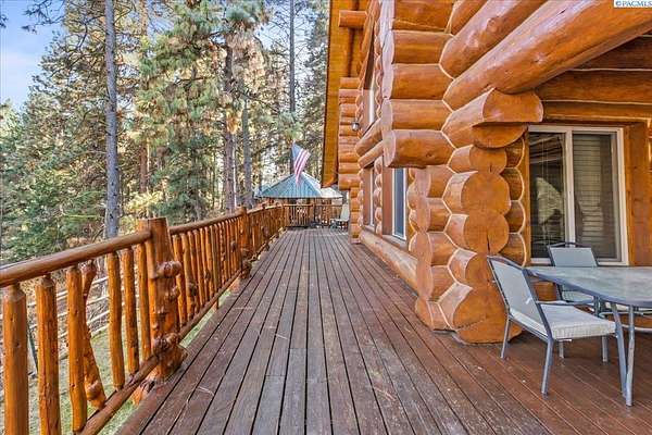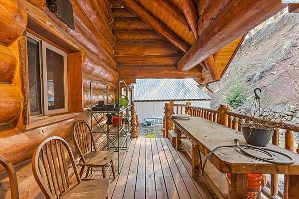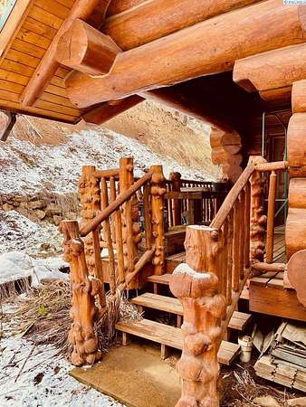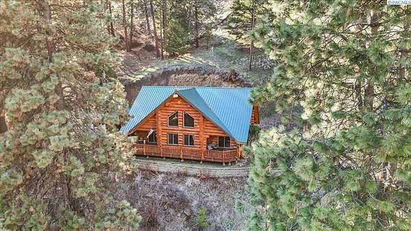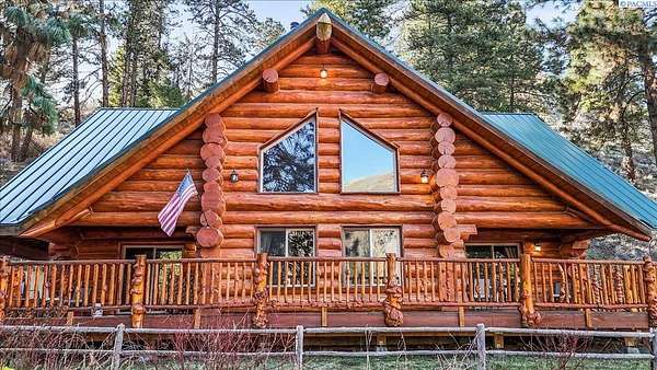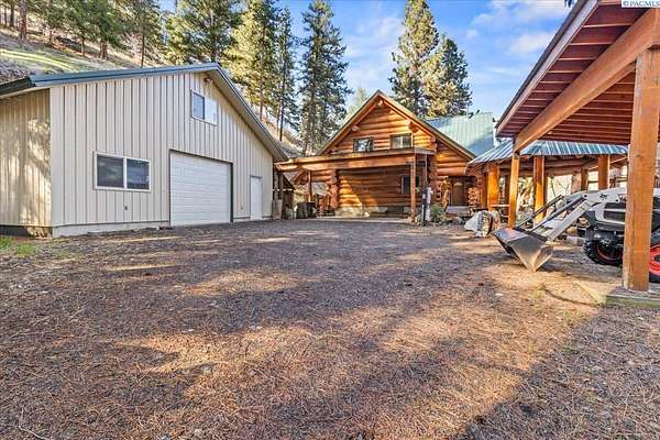 Huge price improvement! If you have been dreaming about a beautiful cabin in the woods where the deer and wildlife hang out, this custom built log home is your dream come true! Built with meticulous care, this home was constructed with carefully chosen and hand-scribed spruce logs. With four bedrooms and two full bathrooms spread across 2720 square feet of living space, there's room for family and friends to gather. The heart of the home lies in its kitchen, equipped with a gas range and a spacious pantry, beckoning culinary adventures and views of the outdoors. Outside, apricot, nectarine, and almond trees, raised garden beds and a chicken coop. A detached heated garage and shop as well, complete with a generous 24 X 32' storage area above the shop area. When it's time to unwind, retreat to the gazebo, its vented roof designed to allow smoke from barbecues to escape, allowing you to enjoy the fire pit without the pesky smoke bothering you. A huge front deck lets you watch the river flow by. Here, with whispering pines and a river running by, discover a home where every detail is taken care of. Welcome home to riverside bliss. Your mountain retreat is waiting!