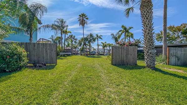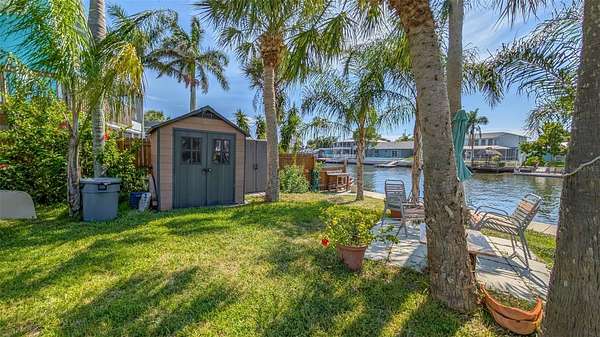 The property has 60 foot of waterfront with an almost NEW SEAWALL and a floating dock. WATER AND SEWER ARE ALREADY PRESENT ON THE PROPERTY. The property is fenced in and has been landscaped around the outer edges in anticipation of a new home. The shed and fish cleaning station convey.