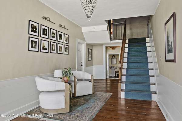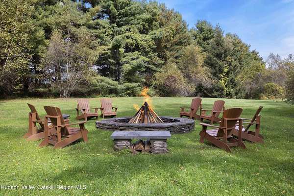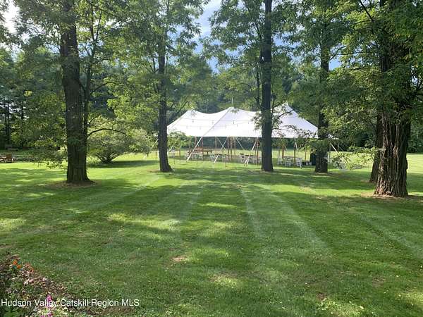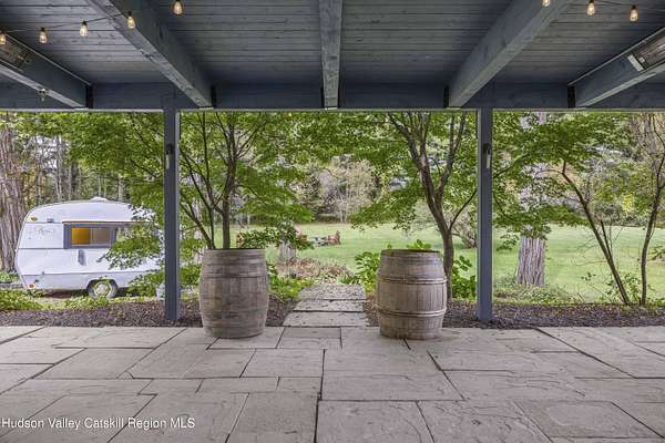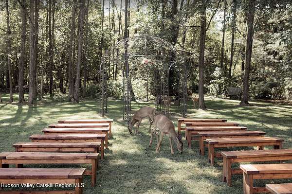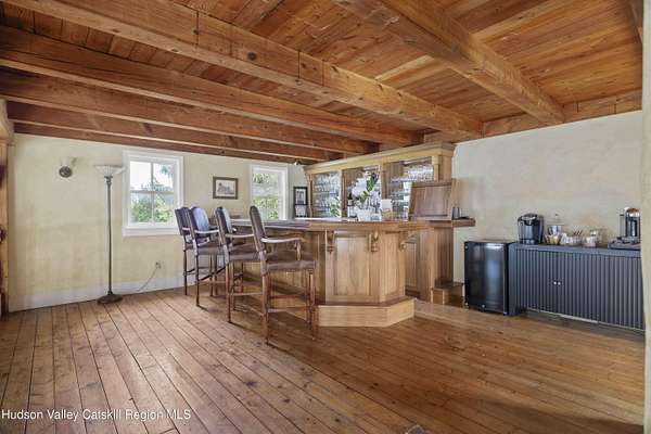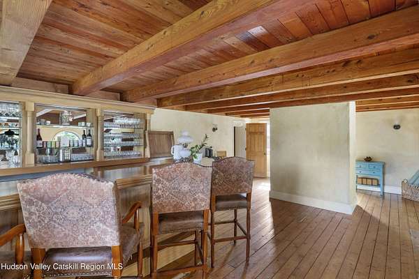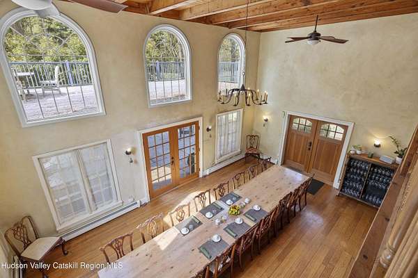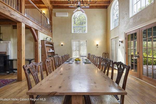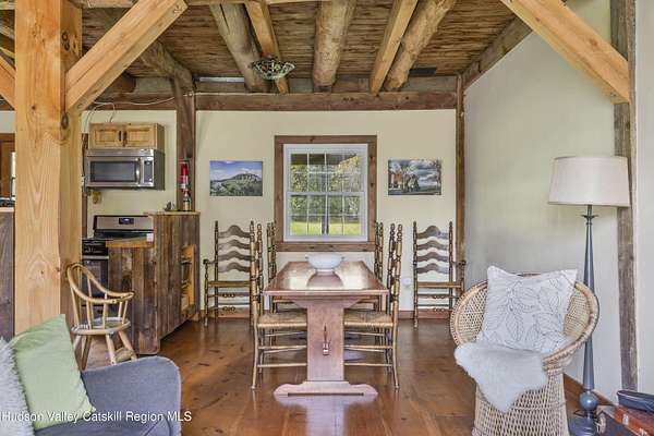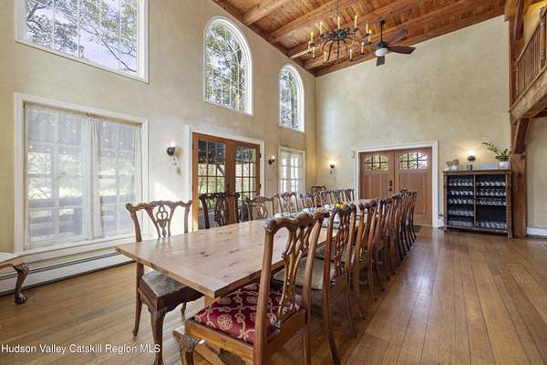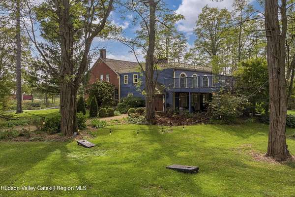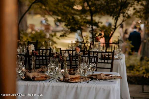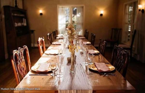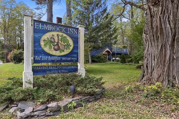 Welcome to Elmrock Inn, an elegant boutique estate in Stone Ridge, where 19th-century Dutch Colonial architecture meets modern country elegance. Set on five acres framed by towering Locust trees, this historic brick estate has long been a sought-after destination for weddings, private events, and unforgettable Hudson Valley getaways. Inside, soaring ceilings, antique-inspired furnishings, and a welcoming great room and grand dining hall with fireplace flow seamlessly. Head upstairs to a second-story bar lounge and expansive deck overlooking the grounds. Below, the bluestone patio under the elevated deck, organic herb gardens, and outdoor firepit create the perfect backdrop for gatherings or quiet retreat. The expansive property lends itself perfectly for badminton and frisbee. Five beautifully appointed suites in the main house feature private baths and luxurious details. On the main level there are two large suites and a separate office, and upstairs are three more suites and a storage closet. The property also includes ample parking and a professional-grade kitchen, ideal for both intimate breakfasts and large-scale catering. Completing the compound is a picturesque post-and-beam guest cottage, equally suited as an owner's residence, artist's studio, or rental opportunity. Its rustic craftsmanship, open floor plan, exposed beams, and abundant light highlight the region's timeless character, with an upstairs suite adding flexibility. Just under two hours from New York City and nestled near Mohonk, Minnewaska, and Stone Ridge, Elmrock Inn offers both lifestyle and income potential: keep it as a thriving bed-and-breakfast, enjoy it as a grand private estate, or reimagine it as a creative retreat or Airbnb. Impeccably maintained and steeped in Catskill charm, this turn-key boutique farmhouse compound is ready for its next chapter. Property consists of 2 buildings: 4494 Route 209, Marbletown (69.4.-1-1.200) 4496 Route 209, Route 209, Rochester (69.4-2-1.320) A 3D Walkthrough Tour is available in the digital Lookbook or by request.