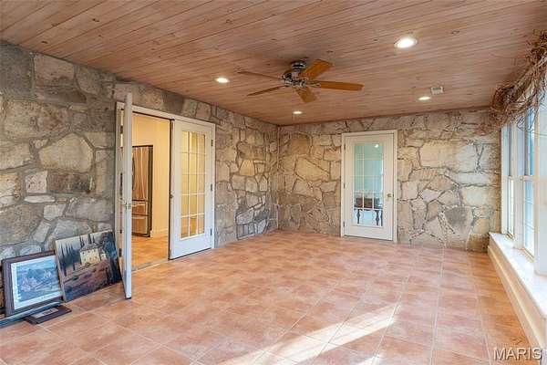 Wild & Scenic Eleven Point Ranch...A premier working cattle and horse ranch on a protected Ozark Mountain Scenic Riverway. A rare property that doesn't come along very often. 661 acres south of the riverway is a rare gem deep in the Mark Twain National Forest, providing serene privacy and seclusion. An outdoorsman's paradise featuring Sportfishing, hunting, kayaking, recreational trails, its very own private cave. Fenced and cross-fenced using an innovative underground watering system, pumping underground spring water to each pasture utilizing 23 frost-free hydrants, valves, and automatic waterers, making the perfect setup in facilitating a rotational grazing operation. An executive-style home built of stone on the hillside overlooking the riverway, providing breathtaking views. This 6900 sq. ft. home features a gourmet kitchen, four spacious bedrooms, four baths, including a master suite. A sunroom filled with natural light and a screened-in porch opens onto a wrap-around deck with an oversized three-car garage. An additional bonus includes a rock ranch hand homestead and a cabin in need of remodeling, both are grandfathered into the protective riverway easement, exempt to being remodeled or rebuilt. Barn with four 10x12 and two 15x12 stalls, tack and feed room with loft. Elevation variance of 220 ft. from a scenic bluff to the river bottom pastures. 137 acres of river bottom pasture serve primarily for hay production or rotational grazing, along with 72 acres of grazing on the bluff area. This ranch has numerous springs and an abundance of watercress along the riverway. Fishing opportunities include smallmouth bass and trout. Imagine your very own riverfront, spending time with family and friends fishing, hunting, hiking, or horseback riding along the river or on the numerous trails throughout the property. Or maybe, just enjoying a nice fall evening campfire under some of the brightest night stars in the Ozarks! For that buyer desiring seasonal or recreational use of the property, there is a local caretaker available to maintain the property in the owner's absence. For the avid deer hunter...there are deer sign and bedding areas all around. There have been up to 190 class whitetails harvested from this property, supporting a healthy deer population with the surrounding national forest.