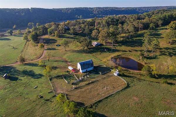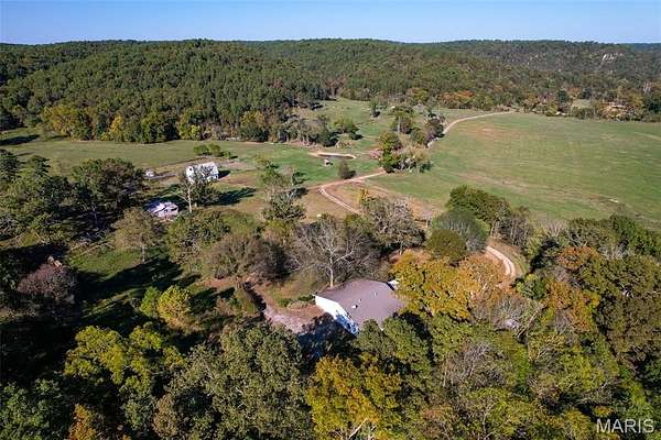 Wild & Scenic Eleven Point Ranch...A premier working cattle and horse ranch on a protected Ozark Mountain Scenic Riverway. A rare property that doesn't come along very often. 410.9 acres north of the river way is a rare gem deep in the Mark Twain National Forest, providing serene privacy and seclusion. An outdoorsman's paradise featuring Sportfishing, hunting, kayaking, recreational trails, its very own private cave. Fenced and cross-fenced using an innovative underground watering system, pumping underground spring water to each pasture utilizing 23 frost-free hydrants, valves, and automatic waterers, making the perfect setup in facilitating a rotational grazing operation. An executive-style home built of stone on the hillside overlooking the riverway, providing breathtaking views. This 6900 sq. ft. home features a gourmet kitchen, four spacious bedrooms, four baths, including a master suite. A sunroom filled with natural light and a screened-in porch opens onto a wrap-around deck with an oversized three-car garage. An additional bonus includes a rock ranch hand homestead and a cabin in need of remodeling, both are grandfathered into the protective riverway easement, exempt to being remodeled or rebuilt. Barn with four 10x12 and two 15x12 stalls, tack and feed room with loft. Elevation variance of 220 ft. from a scenic bluff to the river bottom pastures. 137 acres of river bottom pasture serve primarily for hay production or rotational grazing, along with 72 acres of grazing on the bluff area. This ranch has numerous springs and an abundance of watercress along the riverway. Fishing opportunities include smallmouth bass and trout. Imagine your very own riverfront, spending time with family and friends fishing, hunting, hiking, or horseback riding along the river or on the numerous trails throughout the property. Or maybe, just enjoying a nice fall evening campfire under some of the brightest night stars in the Ozarks! For that buyer desiring seasonal or recreational use of the property, there is a local caretaker available to maintain the property in the owner's absence. For the avid deer hunter...there are deer sign and bedding areas all around. There have been up to 190 class whitetails harvested from this property, supporting a healthy deer population with the surrounding national forest.