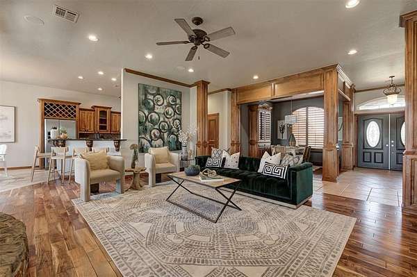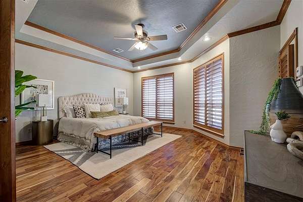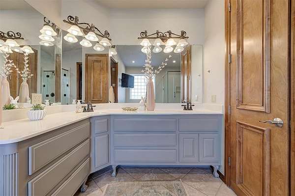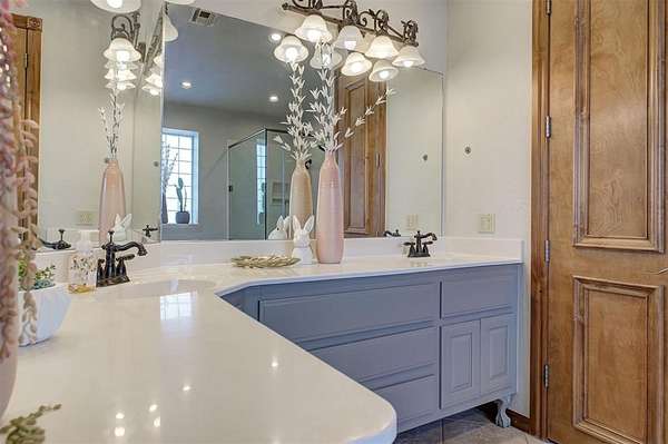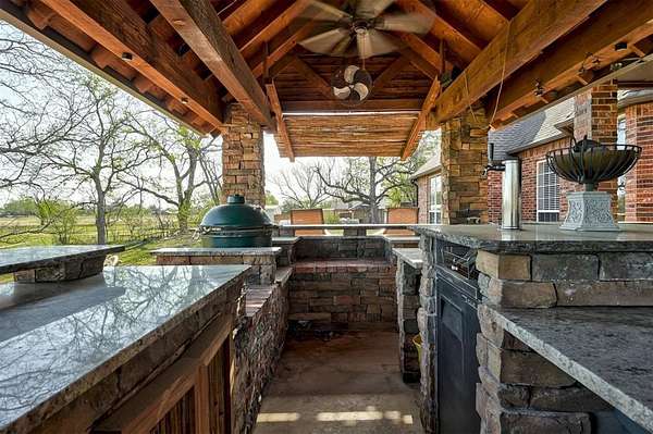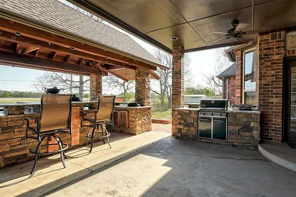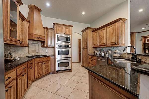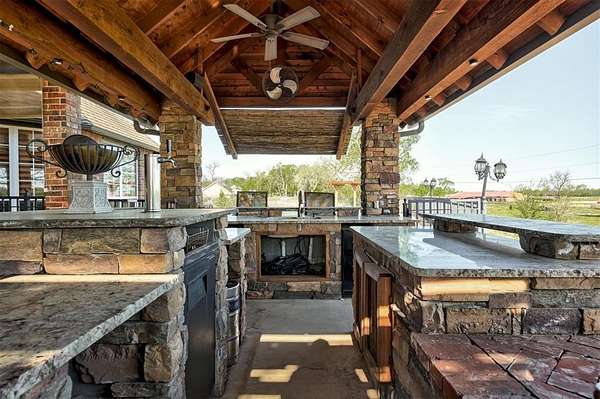 Step into the backyard and you'll understand: an enormous zero-entry pool, deep enough for diving, anchors the scene alongside a hot tub, cabana, pergola, and one of the most impressive outdoor kitchens you'll find in Oklahoma. Complete with exotic granite, dual grills, a kegerator, refrigerator, and covered dining for 16--this space was built for unforgettable memories and golden-hour sunsets.