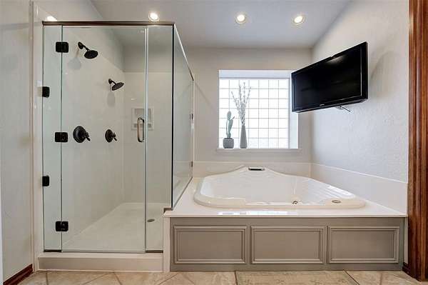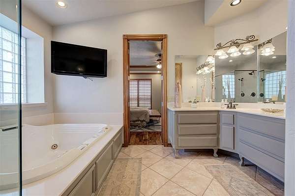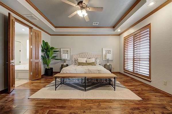The primary suite is a true retreat with a jacuzzi tub for two, oversized shower, dual vanities, and a closet that rivals most bedrooms--complete with built-in dressers, storage, and hidden laundry hampers.