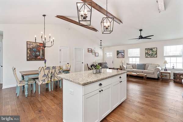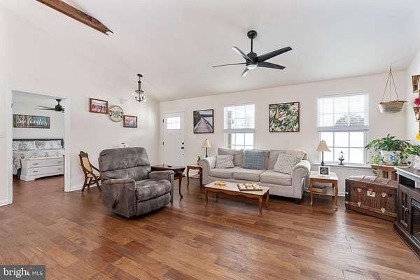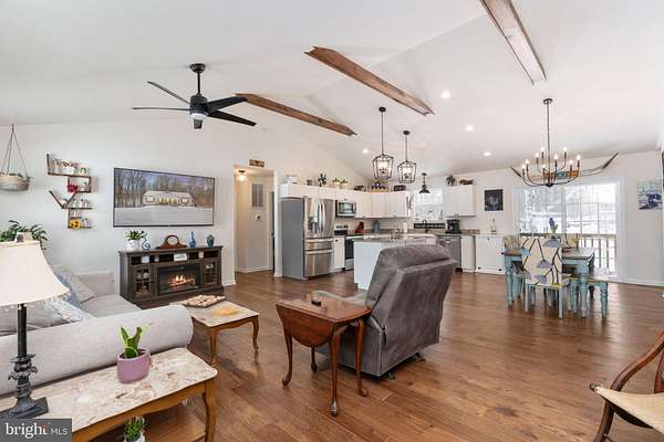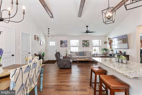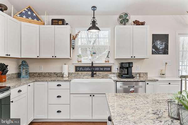 Welcome to 4496 Rolling Hills Drive in the heart of Orange County- where modern farmhouse style meets peaceful country living on six beautiful acres. Built in 2024, this thoughtfully designed rambler offers the perfect blend of new construction convenience and timeless character. Nestled on a private lot with a scenic yard, wooded backdrop, and a tranquil stream, this property delivers the kind of setting buyers dream about - space, privacy, and nature right outside your door. Inside, the main level showcases an open-concept layout that feels bright, welcoming, and ideal for everyday living or entertaining. Rich hardwood floors, striking stained wood beams, and abundant natural light create warmth and visual interest throughout the living, dining, and kitchen spaces. The custom kitchen and bathrooms feature ceramic tile and high-end finishes, offering both style and function. You'll also find three spacious bedrooms and two full bathrooms conveniently located on the main level. The walkout basement is already fully framed and includes a bathroom rough-in, giving you the opportunity to easily expand your living space - whether you envision a recreation room, guest suite, home office, or gym. Practical upgrades add even more value, including a whole-house generator for year-round peace of mind. The fully insulated 12' x 32' shed, complete with electricity and a water line, offers incredible flexibility as a workshop, studio, hobby space, or additional storage. With modern finishes, room to grow, and a serene natural setting, this property delivers the perfect balance of comfort, charm, and countryside beauty - all just a short drive to the conveniences of town.