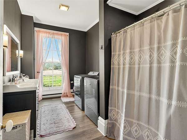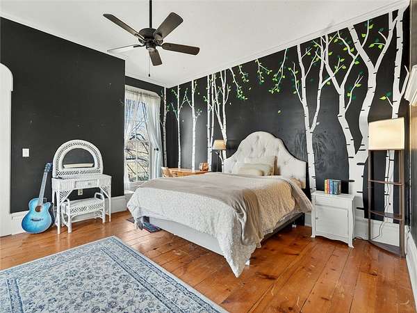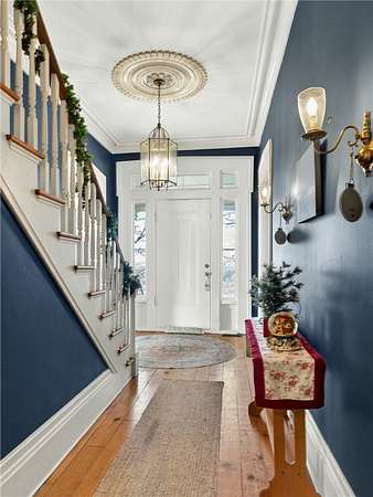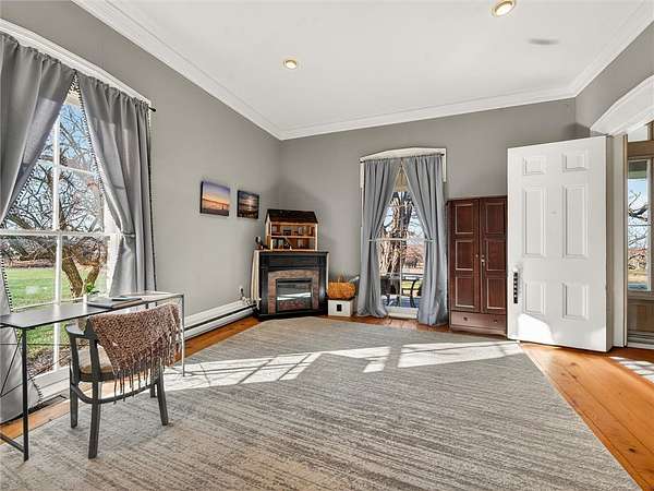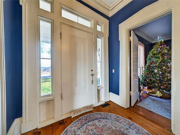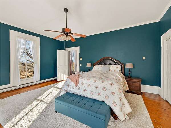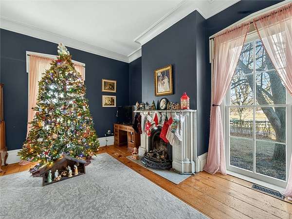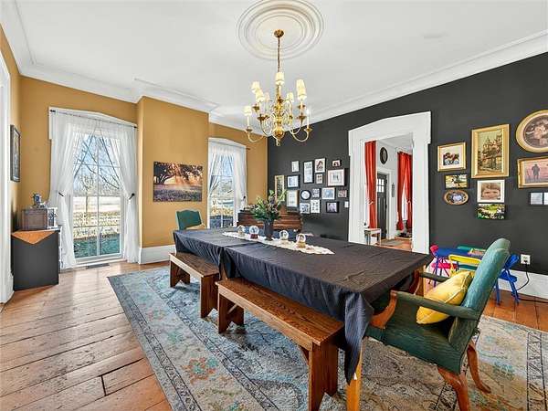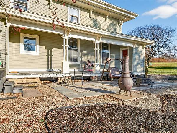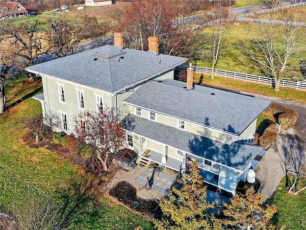 Rare Opportunity! Circa 1850 historic residence set on an exceptional 60-acre parcel with valley views & sunsets. This remarkable home has been thoughtfully renovated to preserve its original character. A beautifully ornate Victorian front porch welcomes you into an elegant interior with wide plank flooring, and floor-to-ceiling windows that flood the home with natural light & scenic views. Distinctive architectural details include arched door headers, crown molding & wide baseboards throughout. Four decorative Vermont Castings gas stoves provide warmth & ambiance in multiple rooms. The remodeled kitchen boasts new cabinetry with illuminated LED drawers, granite countertops, & an exposed brick fireplace with a Vermont Castings inset. Also offers a large formal dining room, a grand foyer with a sweeping staircase, and a comfortable family room with a propane stove & hearth. Library with a full wall of built-in bookcases & a parlor featuring a marble fireplace with gas inset. The second level offers four bedrooms, including a private Owner's Suite - separate heating, updated bath, & laundry. Bonus area of approx. 750 sq ft provides excellent potential for a second apartment, additional bedroom, or flex space. A walk-up attic adds further storage or expansion possibilities. In-law apartment on main level includes living room, kitchenette, bathroom, laundry, and propane gas stove with hearth, all heated separately. Outside included approx. 45 tillable acres currently leased to local farmer for additional seasonal income ($2,500 per season). Property offers outstanding income, suitable for farming, horse boarding, rental use, a bed & breakfast, or even wedding & event hosting. Municipal water service, pond, with an established dressage riding area approx. 200' x 200'. Equestrian amenities include a 6-stall barn, plus a dedicated tack room with electric & heated. Outbuildings include a two-story tool shed, chicken coop, & small cottage w/potbelly stove & storage area. Call for a detailed fact sheet outlining all improvements, utilities, and additional features. Delayed Showings Jan 2, Delayed Negotiations Jan 10 at 6pm.