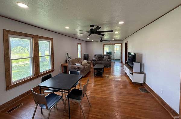 Est $1,228/moRecently updated 4 bedroom, 2 bath home offering 1838 sq ft +/- of comfortable living space on 2 acres +/- overlooking the beautiful Goose Pond Fish & Wildlife Area and only about 2 miles from the Greene-Sullivan State Forest. The home includes an oversized 2-car garage perfect for extra storage and a work space with a third overhead door for the lawnmowers or ATVs. This versatile property offers both modern living and rural opportunity-ideal for hobby farming, recreation, or simply enjoying the hilltop views and wide open spaces.