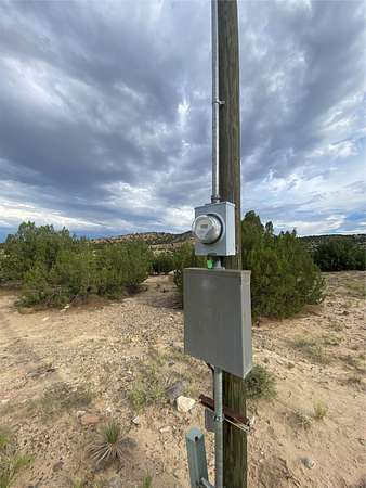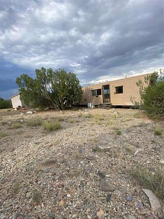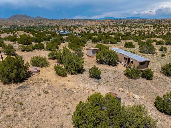 Est $1,191/mo5.5 acres with water and power, adjacent to pavement on Goldmine Road. This acreage, just outside of Cerrillos, offers rolling topography with a number of potential building sites, excellent views, and country quiet. Located minutes from Cerrillos and Madrid, and just seventeen mostly highway miles from the south side of Santa Fe, the property provides room to stretch out without sacrificing convenience. Electric meter and community water on the property. Single wide, travel trailer, shed, and outhouse convey without value.