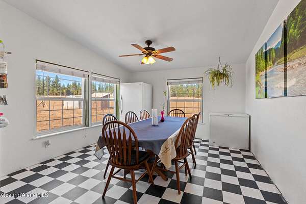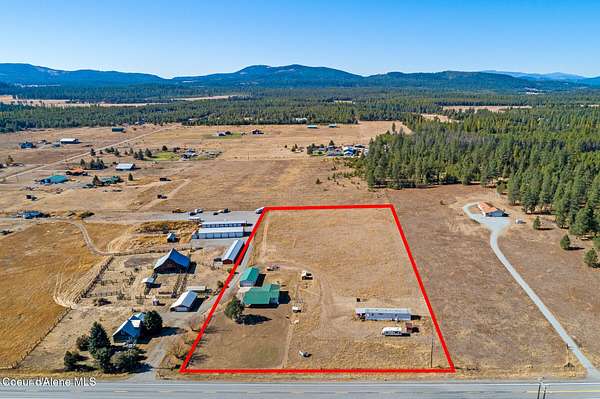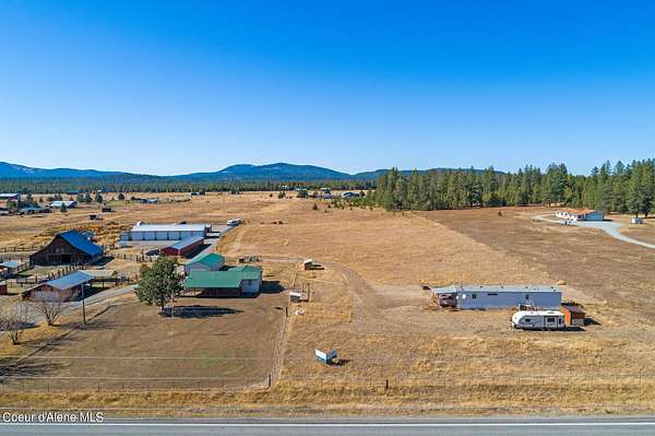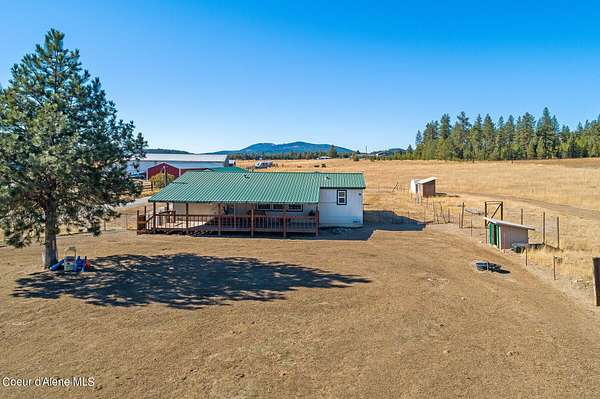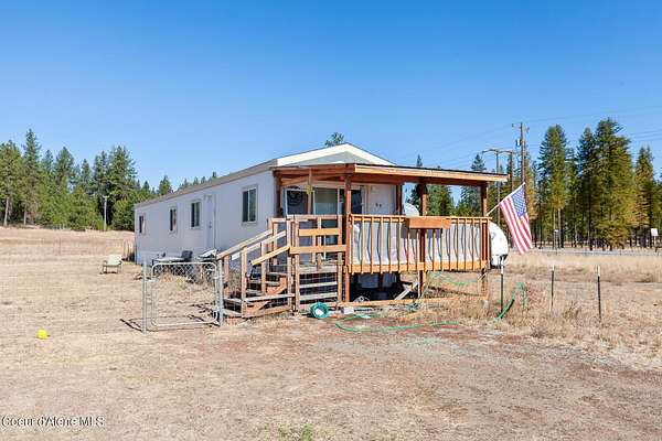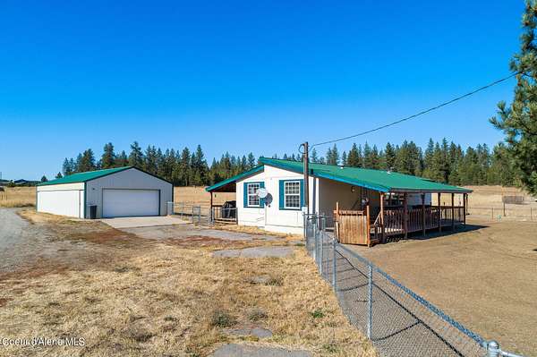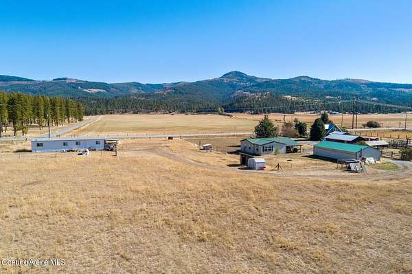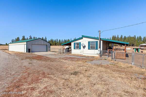 This 3 bed/2 bath home just north of Blanchard, ID on 5 fully fenced acres is set up for raising animals and has good access to shopping and restaurants within a 15-minute drive. The main home, set as real property, is open and spacious with forced air heat, central air, kitchen with a dining area, and a separate living room. A 24x48 detached shop/garage w/wood stove has plenty of space for a workshop and there is still room for parking vehicles. The single-wide manufactured home set as personal property can be used as mother-in-law quarters or for rental income. The 2021 Fleetwood is a 2 bed/1 bath home with forced air heat, central air, comp shingle roof, and a nice, covered porch. This home has an independent septic system and is connected to the private well. Well, is at 20 gpm. This is a great opportunity for someone with extended family or for someone looking for a property with extra income potential.
