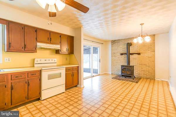 - Carpet, Ceiling Fan(s), Combination Kitchen/Dining, Country Kitchen, Traditional Floor Plan, Tub Shower Bathroom