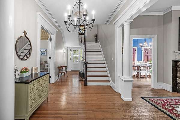 BUY THIS HOME, I WILL BUY YOURS! Park and ride! Take the train from Trenton directly to Penn Station NYC! A quick commute to the city for 45 Bordentown Crosswicks Rd! Work in the city and come home to your beautiful retreat to unwind! Welcome to 45 Bordentown Crosswicks Rd, an exquisite Italianate Victorian home built in 1840, nestled on 2.13 private acres in Chesterfield Township. With over 4,800 sq ft of interior living space across three stories, this remarkable residence blends timeless historic charm with thoughtful modern updates. Step inside and be greeted by the grandeur of 11-foot ceilings, original hardwood floors, crown molding and historic details such as the stamped-tin ceiling, stained glass windows and the original banister and railings. The updated eat-in kitchen is both functional and beautiful, featuring granite countertops, white shaker cabinets, stainless steel appliances, a farmhouse sink, subway tile backsplash, and a brick wood-burning faux fireplace. Bench seating and built-in storage lockers create a cozy yet practical space, while French doors lead out to the backyard oasis. The second floor offers 4 bedrooms and 2 full bathrooms including a spacious primary suite with a walk-in closet with custom built-ins and a spa-like bath with tiled flooring and an original clawfoot tub. A convenient second-floor laundry room and a flexible space perfect for an office or sitting area complete this level. On the third floor, you'll find 5 additional bedrooms and a full bath featuring a huge tiled shower with glass doors, a soaking tub and marble top vanity-ideal for large households or guests. Outside, enjoy resort-style living with a heated Gunite saltwater pool with hot tub (fits up to 15 people), surrounded by stamped concrete and lush custom landscaping with mature trees. The property also includes a detached garage (with one bay converted into a game room), new garage doors, a 40 x 65 pole barn currently set up as a gym, batting cage and a baseball training station! Additional features include a 7 year old roof on the main home, radiator heat, a tankless water heater and a serene screened in sunroom that offers the perfect space to relax and take in the surrounding beauty. Don't miss this rare opportunity to own a piece of history that seamlessly combines elegance, space, and modern comfort in the heart of Crosswicks. Schedule your private showing and see what Chesterfield has to offer you. If you would like to get the most up-to-date information on this home, call the actual listing agent see details below. For information on this exclusive Buyer Protection Plan, call the listing agent directly see info below. *This home qualifies for a 1% buy down rate for our VIP buyers. *Don't get stuck owning 2 homes. If you are looking to buy a home but have one to sell, you are finding yourself in the same dilemma that most homeowners find themselves in. We can help! To discuss the details of this incredible option, call the listing agent for a free report on this exclusive option and how it works visit my website see below for info. *This one comes with a 12 month limited home warranty, a $500 Lender credit, a $100 Home Inspection Credit for our VIP Buyers. Call to become a VIP Buyer.