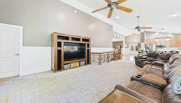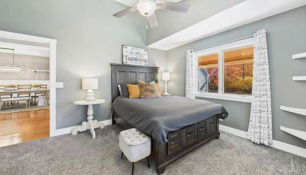 - Bookcases, Ceiling Fan(s), High Ceilings, Kitchen Island, Open Floorplan, Walk-In Closet(s)