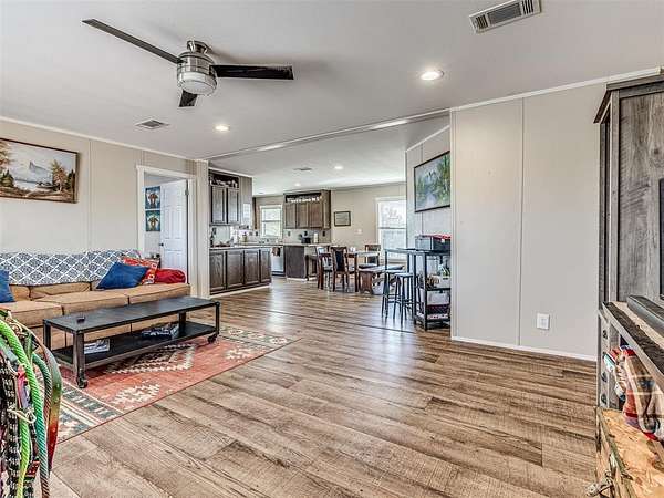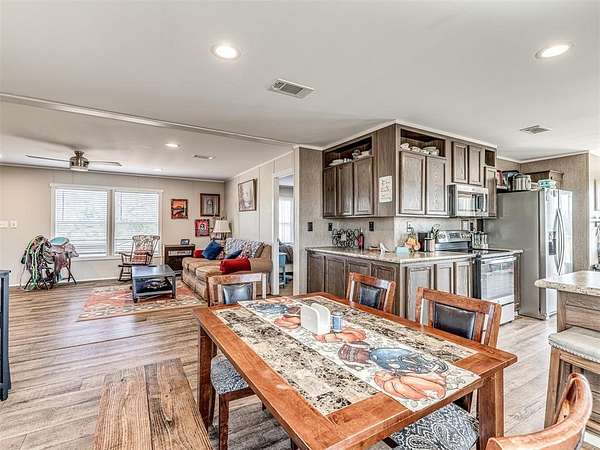 Built in 2022, this 4-bedroom, 2-bath home offers is a modern country retreat! Located on 4.5 fully fenced acres this offers plenty of space for both livestock and people! The home features a clean, contemporary exterior with a welcoming covered porch, perfect for morning coffee or watching the sunset over your land. Inside, you'll find an open-concept layout with warm wood-look flooring, neutral finishes, and abundant natural light that makes the living space feel inviting and airy. The kitchen and main living areas are ideal for gathering and entertaining, while the spacious bedrooms provide comfortable private retreats for the whole family. Outdoors, the property is ready for your lifestyle - featuring a lean-to/shed for horses, fencing already in place for livestock, and plenty of open space to expand, garden, or simply enjoy the view. With easy access to the interstate, this home offers the peace of rural living with quick, easy access to the city - the perfect balance of country and modern amenities. Whether you're starting your homestead, need space for animals, or just want room to breathe, this property is ready to welcome you home.