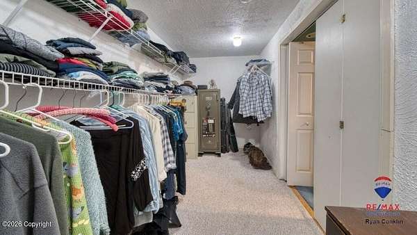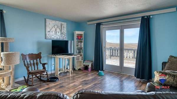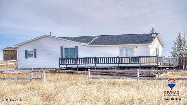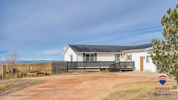 Enjoy stunning views from this property located in the 8 Mile Subdivision, and just minutes from town. The home sits on 4.25 acres and offers a wrap-around deck and patio window with a clear view of the Bighorns to the west. Inside, you'll find main-level living, a spacious living room, three bedrooms and two bathrooms. The primary bedroom includes a roomy walk-in closet and a large bathroom. The attached oversized two-car garage adds convenience, and there is extra space for RV parking. The lot also features a storage shed, a loafing shed, and plenty of room to build a shop. For more details, contact Ryan Conklin, RE/MAX Professionals,.