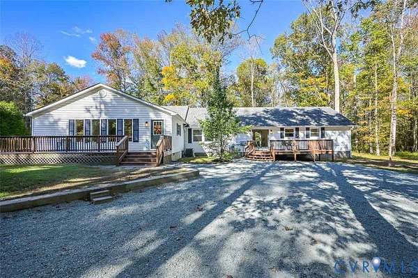 Looking for a home with in law suite this is it. 2 Homes in one. In-law suite features Inviting Living Room open to updated kitchen with quartz countertops and new appliances. Primary features 2 closets, Full bath attached with custom tile shower, double vanities. 2 other flex rooms or office with closet, full bath in hallway and 1/2 bath with washer and dryer room off living room, has own private entrance and deck. also has its own electric meter. The main house features Large living room with hardwood floors looking out to front yard with small creek, Full country front porch with new front door, Eat in kitchen features new cabinets, quartz countertops, and appliances, opens to large private deck. Primary features large walk in closet , primary bath with updated vanities, lighting/heat fan, flooring. Full bath in hallway has upgraded vanity, lighting and flooring. 2 nice sized bedrooms. You can access both houses within each other seperated by steal locking door. The garage is 1500 sq foot and can accomdate 4+ cars, one side seperated with walk up stairs and storage , garage is heated and insulated, a newer door installed. auto door opener, new roof, and has its own electric meter. Lean to is 300sq feet . All on 2.5 acres this is a must see.