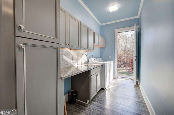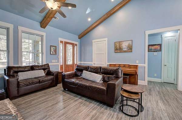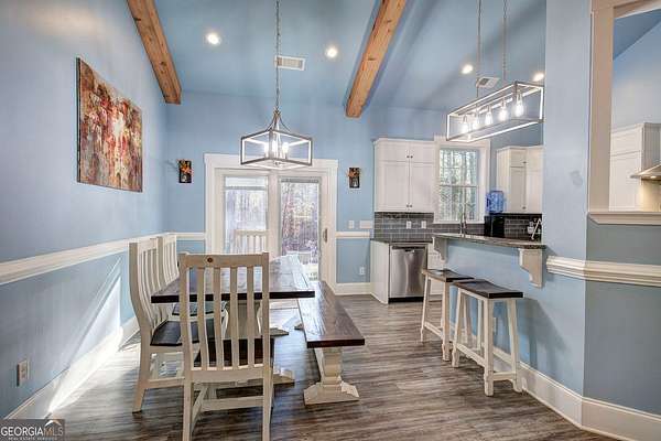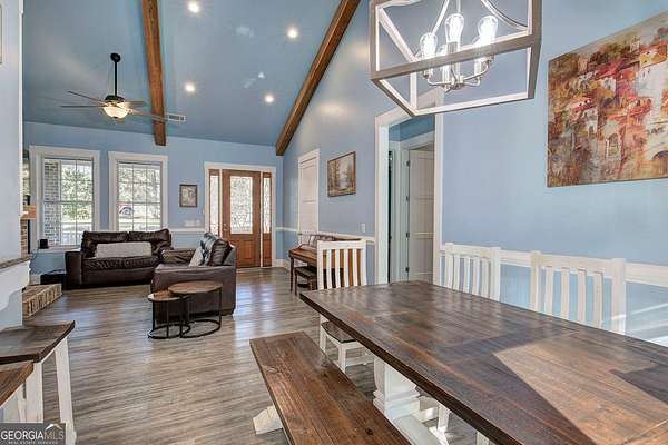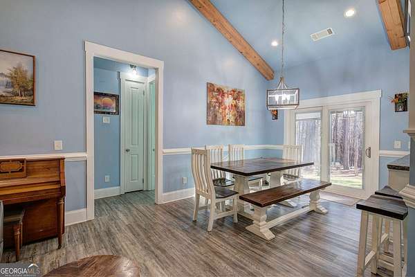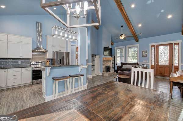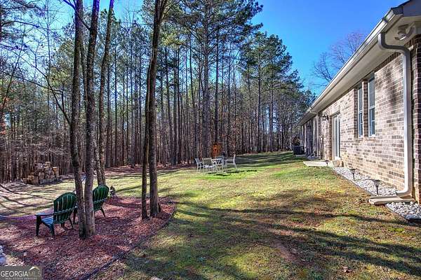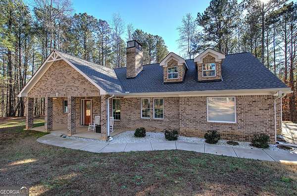 Escape to your private sanctuary in Taylorsville. Situated on a sprawling 4.97-acre lot, this custom-built, all-brick ranch offers the perfect blend of architectural excellence and natural beauty. Built with superior craftsmanship, the home features all exterior walls with 6-inch framing and a roof made of engineered trusses, ensuring lasting structural integrity and peace of mind. This thoughtfully designed home features 3 bedrooms and 2 bathrooms. The open-concept interior impresses with soaring ceilings accented by faux beams and 6-inch baseboards. No detail was overlooked, from the intricate tray molding in every room to the cozy wood-burning fireplace. The heart of the home is a kitchen designed for tranquility, offering peaceful views of the expansive backyard. Practicality meets style in the very spacious laundry room, which comes fully equipped with a utility sink and plenty of cabinets for storage. Additionally, the garage is fully finished with waterproof LVP flooring, making it a perfect multi-purpose space for a home gym or hobby shop. The outdoor experience is unmatched: Enjoy the quiet surroundings from your stunning gazebo or explore the custom-built treehouse. With nearly 5 acres, a lush perimeter of trees, and a level landscape, this is a gardener's paradise offering space to grow and total privacy.