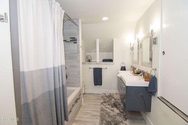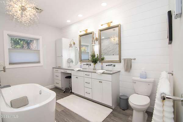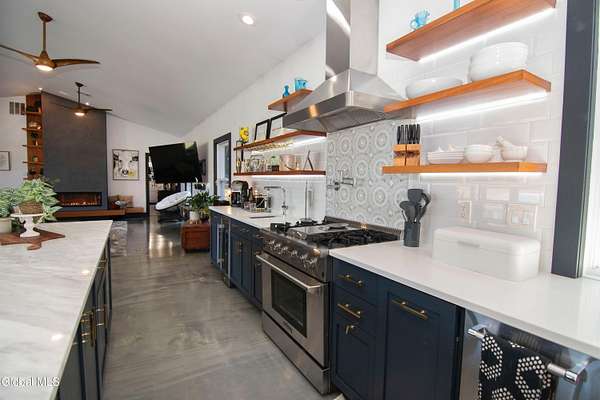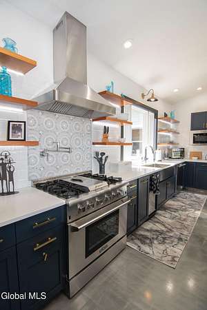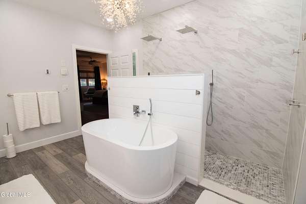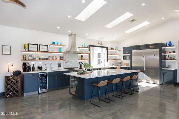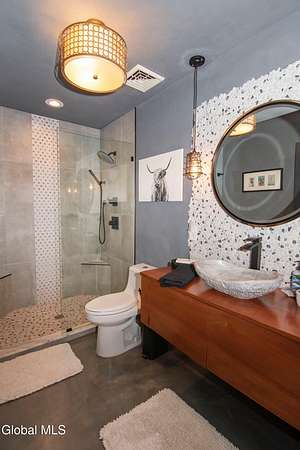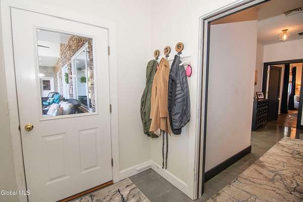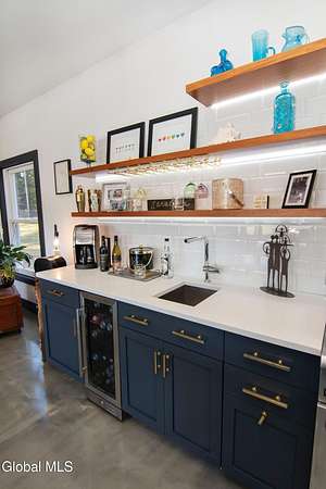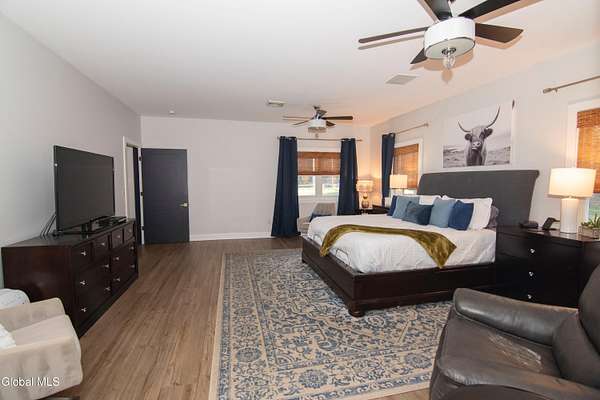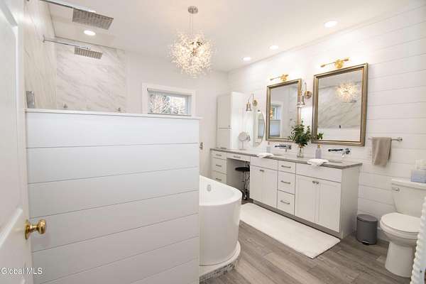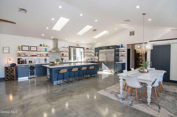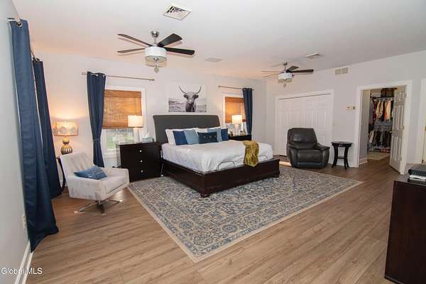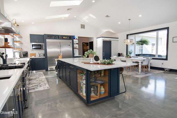 Striking Modern Industrial Design + Wide Open Spaces Inside/Out Make this Greenfield Ranch & Pool Truly Unique and Private, just 4 Miles from Broadway in Saratoga Springs! This thoroughly renovated ranch interior gives ''barndominium'' vibes, offering an efficient layout with a vast, cathedral centralized great room and two wings holding 4 bedrooms that each have an ensuite bathroom. The primary suite is exceptionally private, spacious and well-appointed! Highlights include a floor to ceiling gas linear ''Fire Glass'' fireplace, a showstopping kitchen w/ 12' marble island and Acacia butcher block, quartz perimeter top, floating shelves, backsplash, upgraded stainless appliances & walk-in pantry, radiant flooring t/o + central A/C, gated entry, 5 stunning updated tiled bathrooms. Fourth BR is versatile w/ exterior access through mudroom for other uses! Pool provides year-round water feature and seasonal fun w/ two pool houses offering a kitchenette, powder bath and lounge space. Oversized garage provides extra storage and the home has a full automatic backup generator for peace of mind. Home was originally built to be ADA compliant throughout. Enjoy peaceful country living just 4 mi. to Downtown Saratoga Springs in the Town of Greenfield and Saratoga School District, less than a mile from the Award-winning Greenfield Elementary School. There is a town post office, Stewarts, Greenfield Animal Hospital, Fierro's Pizza, Greenfield Wine & Liquor, Fossil Stone Winery, Twin Leaf Farms, Mihalek's Garage and other businesses all within a mile. A weekly farmers market takes place all summer long and the town offers popular youth recreation programs, the Brookhaven Golf Course, and many community activities throughout each year. Contingent upon sellers securing closing on house they have under contract. Prefer to close in 4-6 weeks.