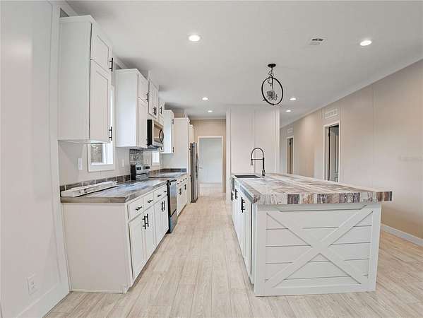 Motivated seller and is willing to consider all offers. Embrace the pinnacle of modern country living with this brand-new 2025 manufactured home, perfectly situated on 3.58 private acres just outside the city limits of Frostproof. Ideally located in the center of the state, this expansive four-bedroom, three-bathroom residence offers the ultimate retreat, combining contemporary design with the peace and freedom of the Florida countryside. The heart of the home features soaring 9-foot ceilings that enhance the open-concept feel of the chef-inspired kitchen. This culinary space comes equipped with 2025 stainless steel appliances, an abundance of cabinet storage, and a dedicated coffee bar for your morning ritual. Guests can gather around the large breakfast bar or enjoy formal meals in the adjacent dining room. Designed for versatility, the floor plan boasts both a formal living room and a cozy family room, ensuring plenty of space for entertaining. Retreat to the private primary suite, a true sanctuary featuring a massive walk-in closet and a spa-like ensuite with dual sinks, a walk-in shower, and a deep soaking tub. The split-bedroom layout ensures maximum privacy, while the convenient indoor laundry room adds modern functionality to your daily routine. Outside, the possibilities are endless. With over three and a half acres of land, you have the freedom to create your own homestead, workshop, or garden oasis. While you’ll feel worlds away from the hustle and bustle, your central location ensures you are perfectly positioned for adventure, located approximately 90 minutes from the vibrant attractions and international airports of both Tampa and Orlando. Experience the best of Florida’s rural charm in a never-lived-in masterpiece— bring all your offers and make this dream home a reality. Schedule your tour of this 2025 Frostproof gem today!