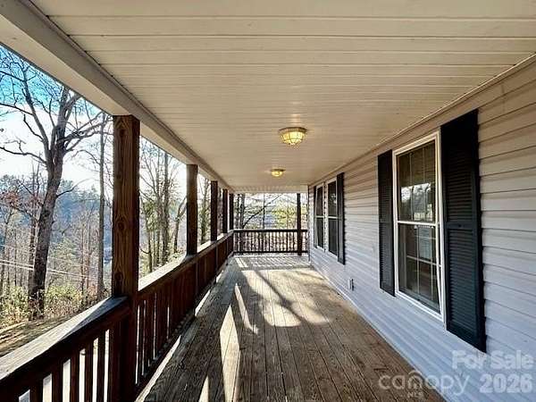 Mountaintop privacy awaits! 3BR/2.5BA modular with part finished basement on 3.20 acres. Winter mountain views from the wrap covered porch that faces South East to South West. Main level has an open kitchen with granite countertops and an island plus dining area, bright living room and 2 doors to the covered wrap deck, 2 guest rooms, full bathroom in hall, laundry in hall with cabinets, primary bedroom with en-suite bathroom. Lower level has a carpeted family/flex room with half bathroom and entry door to the double garage with workshop bench. Upper section of the driveway to unload groceries by the kitchen door. Private well. Plenty of parking and area to turn around at the top of the driveway. Level rear yard. Conveniently located near Weaverville, Mars Hill, Asheville and Wolf Laurel ski area.