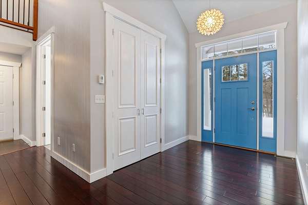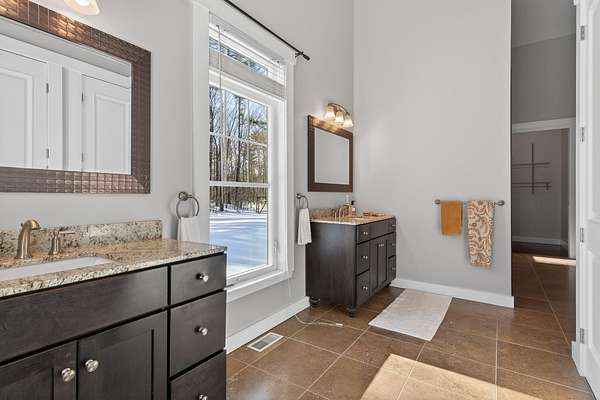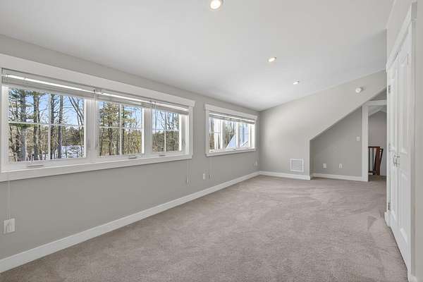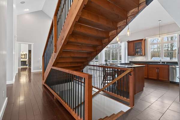 Welcome to 45 Old Post Road, a private retreat offering space, strength, and calmaEUR"set just minutes from the coast in York, Maine. Positioned on over 2.6 acres and set back from the road, this custom-built home delivers privacy and quiet while remaining less than two miles from Short Sands and Long Sands Beaches, York Village, and everyday amenities. Inside, the home opens into bright, expansive living spaces defined by soaring ceilings, warm wood tones, and natural stone details. The open-concept kitchen, dining, and living areas flow effortlessly, anchored by a double-sided gas fireplace that brings warmth and connection throughout. Large windows frame views of the surrounding landscape and fill the home with natural light. The first-floor primary suite is a true retreataEUR"generously scaled and thoughtfully designed with a sitting area, a second double-sided fireplace, and a spa-inspired bath featuring a stone walk-in shower sourced from the property itself and an indoor hot tub. This space feels more like a private studio or wellness suite than a bedroom. Upstairs are two additional bedrooms and a full bath, while the finished walkout lower level offers exceptional flexibility. With its own entrance and expansive open layout, this space is ideal for a home gym, media room, guest quarters, or future in-law suite. Outdoors, multiple decks, a firepit area, and wooded surroundings create year-round enjoyment, with frequent visits from local wildlife enhancing the sense of seclusion. A rare and valuable bonus: the property includes a confirmed buildable lot, offering future expansion, investment potential, or added privacy. Additionally, the home is eligible for an assumable VA mortgage, providing qualified buyers with a significant financing advantage in today's market. Quiet, substantial, and thoughtfully designed, 45 Old Post Road offers a rare opportunity to own a home that feels grounded and restorativeaEUR"just moments from the Maine coast.