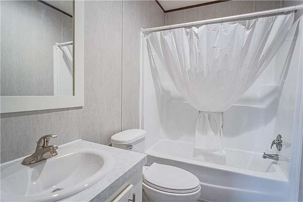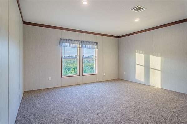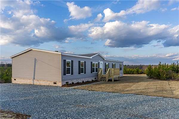 Welcome to 45 Rolling Ridge Road, a brand-new manufactured home set on a spacious 6.24-acre lot offering privacy, room to roam, and abundant wildlife. This thoughtfully designed home features 5 bedrooms and 3 full bathrooms with an open, inviting layout. The kitchen features a large center island, appliance package including refrigerator and range hood vent, and a generous walk-in pantry. The kitchen flows seamlessly into the dining area and welcoming great room, creating a comfortable and functional living space. The primary suite offers ample room, a huge walk-in closet, dual vanity sinks, a tiled walk-in shower, and a separate soaking tub. Additional 4 bedrooms are well-sized and versatile. Enjoy the peaceful surroundings from the front and back porch decks, overlooking land frequented by deer and local wildlife. The home is under-pinned with brick and will qualify for FHA and VA financing. Move-in ready!