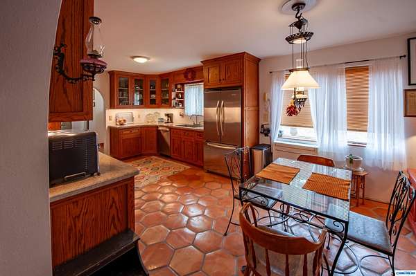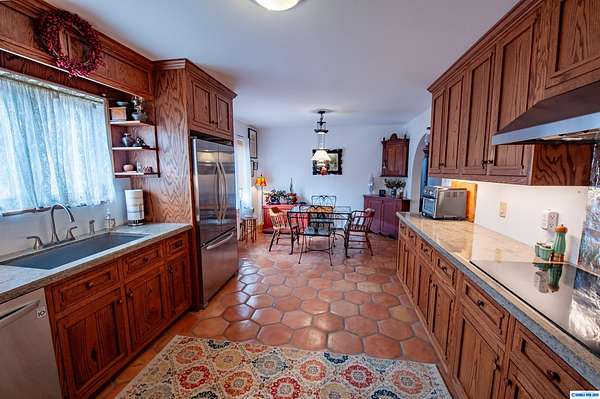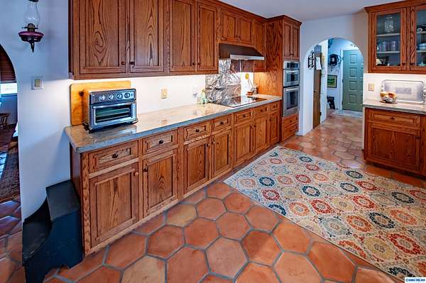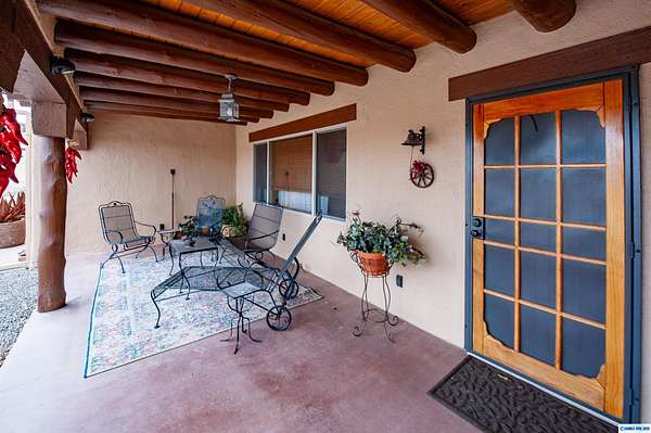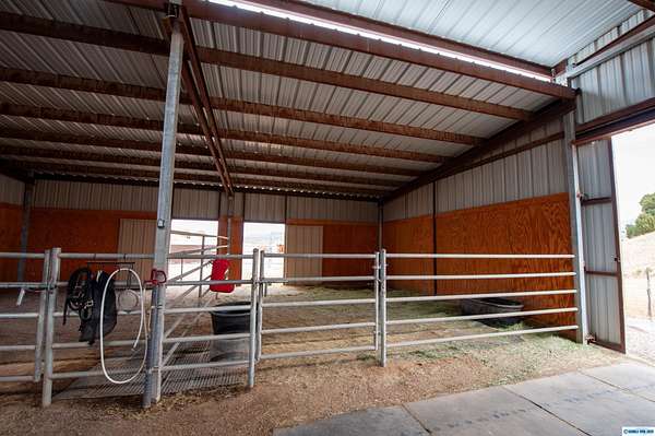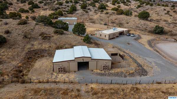 Enjoy the beauty of the Big Burro Mtns and the Gila National Forest from this unique property. The 2514 sq, ft. home includes a 1718 sq. ft., 3 bedroom, 2.5 baths main home and a 796 sq. ft. 1 bed, 1 bath, kitchen, study & living room as guest or in-law quarters which is separated from the main house by a workshop and breezeway. Custom kitchen in main house sports locally crafted custom cabinetry, granite countertops and stainless steel appliances. Both units are heated with pellet stoves. The pueblo style home is in a very private area with unobstructive views. Forest boundary on two sides allows you to view deer, elk, numerous birds and more. Property includes 40'x40' four stall stable and round pen with pipe fence. Garage features 3,600 sq. ft. insulated garage with 16'w x 14'h door for vehicles, RV's & ATV's. Discover the perfect blend of privacy, accessibility and natural beauty of this exceptional acreage. There are no HOA's or covenants and it is not subdivided.