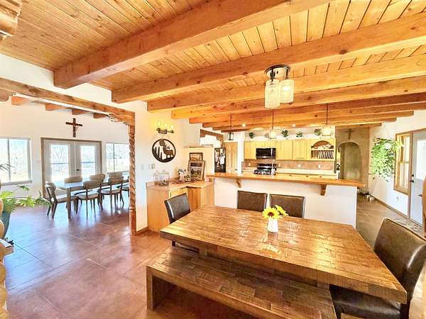 Discover Your Dream Home in the Los Cordovas Valley. Immerse yourself in the epitome of luxury at this exquisite residence nestled in the heart of the Los Cordovas Valley. With an expansive footprint of approximately 2,908 square feet, this four-bedroom, two-bathroom home boasts ample space to accommodate your cherished lifestyle. Encompassing an expansive 1.75 acres of land, the property features an attached three-car garage and a detached two-car garage, providing ample parking for your vehicles. The surrounding landscape is a harmonious blend of beautiful landscaping, enclosed by fencing and stucco walls, creating an unobstructed vista of Taos Mountain and Pueblo Peak. Indulge in moments of tranquility under the covered porches adorning the North, South, and West sides of the home. The property's entertainment areas are meticulously designed to cater to your discerning tastes, featuring mature trees, lush greenery, a fire pit, and an array of additional amenities. Upon entering the home, you will be enveloped in a luxurious ambiance. Heated radiant cement slab floors, tongue-and-groove wood ceilings, decorated with vigas, plaster walls, and updated appliances contribute to the refined atmosphere. The spacious and well-appointed rooms exude a cozy and inviting atmosphere, perfect for a wide-open yet intimate living experience. Schedule an appointment with us today to experience this magnificent home firsthand, whether through an in-person visit or a virtual tour.