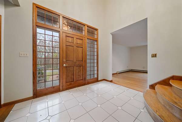 "Unique Custom Built Home set on 4.26 Acre Lot in Established Windham Neighborhood." Enter into this Grand 2 Story foyer with a turn staircase ,chandelier and upper landing. Open concept on the 1st Floor features the family room with hardwood floors,and wood fireplace open to the eat in kitchen with it's center island and tile flooring also a slider to large Trek Deck.Pass through the swinging door to a front to back combo formal dining/living room with a vaulted ceiling and wood burning fireplace.Up front close to the entryway enjoy your own private office or 4th bedroom. Second floor features 3 bedrooms with a full bath in the hallway ,enter the private master suite through double doors to a vaulted ceiling ,large walk in closet and private master bath with jet tub, shower and double vanity.Go down to the finished lower level to a large open great room/playroom with an additional craft room or office with separate heating.Tons of storage space in utility room with an extra refrigerator for entertaining.The finished basement has a walkout door and several daylight windows.The family room has access to a separate laundry room on the way to a large 2 Car attached Garage with walkout to side yard.