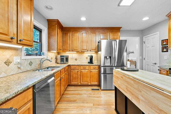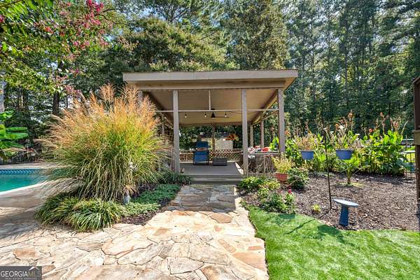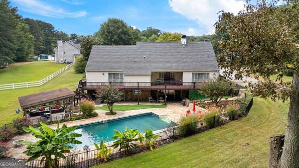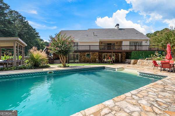 Priced reduced - $30,000 below appraisal !! Lakefront Property - Beautiful Custom Ranch on a Full Finished Basement on 2.2 Acres. Discover this stunning 5-bedroom, 3-bath custom-built ranch offering over 4,400 finished sq. ft. plus an additional 849 sq. ft. of unfinished storage. Nestled on a quiet cul-de-sac lot overlooking private Sullivan Lake, this home boasts incredible views, a 20x40 in-ground pool, a spacious stone patio, and a covered pavilion for year-round enjoyment. The home features low-maintenance vinyl siding with stone accents, a 2-car side-entry garage, and expanded parking with an extra concrete pad. Inside, you'll love the bright, open floor plan with sliding glass doors spanning the entire back of the house, complemented by custom sliding plantation shutters. Main Level Highlights: Primary suite with updated bath featuring new cabinet, sink, lighted vanity mirror and granite counters, 2 additional bedrooms and full bath, Family room with soaring 2-story stone fireplace & gas logs, Separate formal dining plus breakfast room, Cozy morning porch and grilling deck off breakfast room, Large laundry room, Upstairs: Loft/office with built-in bookcases & spiral staircase, On the other side of the home is an additional 384 sq. ft. bonus room with a closet. Terrace Level: 2nd family/media room, Bedrooms 4 & 5 plus 3rd full bath, Office/flex space, 2 sets of sliding glass doors with pool and lake views, Second laundry room, Large storage room. Hardwood flooring on main, carpet in bedrooms, tile in baths, granite in updated bathrooms, upgraded Trane HVAC systems, and roof ~7 years old. Outdoors, enjoy the new hot tub on the lower deck and a 12x8 shed with a ramp for lawn equipment. Located in the Northgate High School District, this exceptional home truly has it all. Showings begin Friday, September 26th. Don't miss your chance to see this one-of-a-kind property!