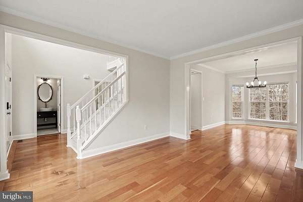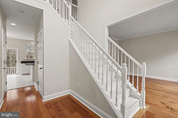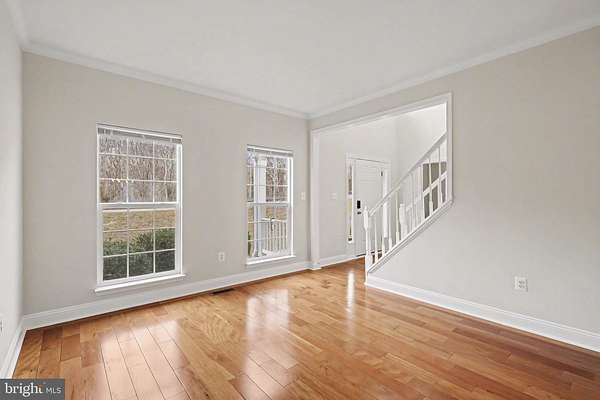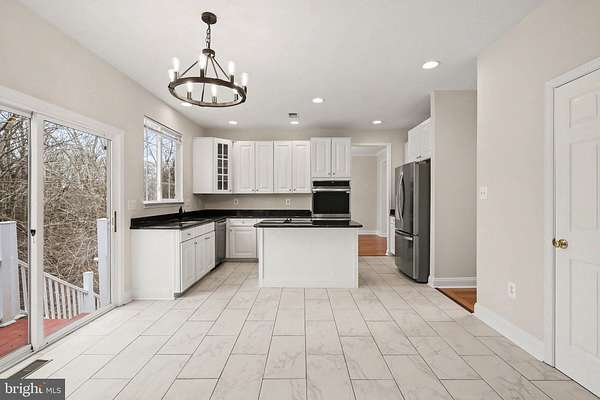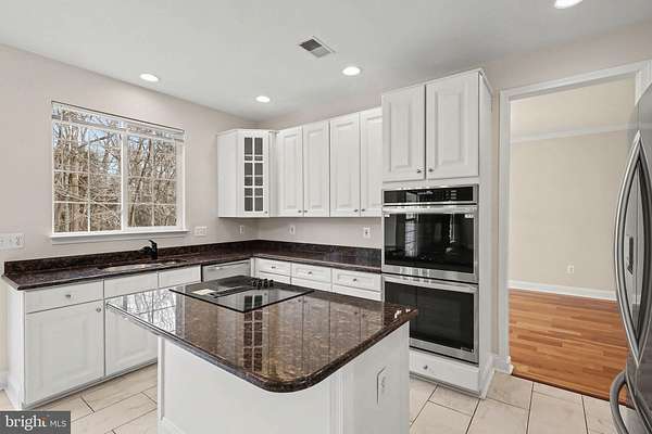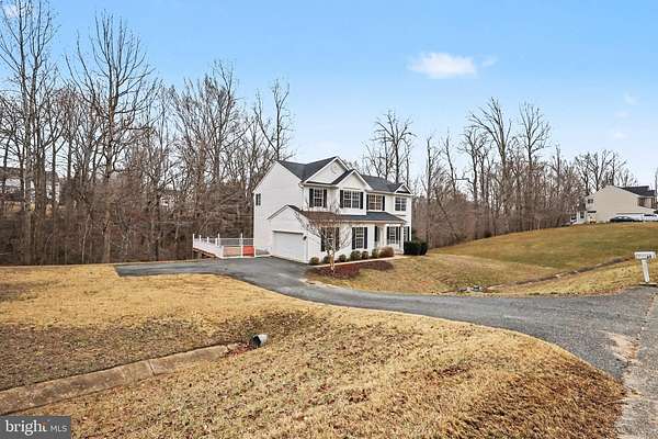 Move-In Ready 4BR Colonial with Wide-Plank Cherry Hardwood Floors, UPDATED Kitchen, Finished Basement & Side-Load Garage in Poplar Hills! LOWEST Priced home in Poplar Hills since 2021!!! Step into a bright two-story foyer with updated chandelier and rich wide-plank cherry hardwood flooring that carries through the living room, dining room, family room, and upper hallway. Nine-foot ceilings on the main level create an open, airy feel. The living and dining rooms feature crown molding and abundant natural light, with a bay window anchoring the dining space. The kitchen is a standout with 42-inch raised panel white cabinetry, granite countertops, center island with breakfast bar overhang, 12x24 ceramic tile flooring, recessed lighting, pantry closet, and brand-new stainless steel appliances including double wall oven, cooktop with downdraft, and French door refrigerator. The breakfast area opens to the rear deck through sliding glass doors. The family room offers cherry hardwood floors, ceiling fan, and a propane fireplace with stone hearth and surround. Upstairs, the primary suite features cathedral ceilings, two walk-in closets, cherry hardwood floors, and a spacious bath with marble flooring, dual-sink vanity with prep station, corner soaking tub, and separate tiled shower. Three additional bedrooms with hardwood flooring and double-door closets share a hall bath with marble floors and ceramic tile tub/shower surround. The finished basement includes a large recreation room with recessed lighting, new carpet, sliding glass door to the backyard, egress windows, and rough-in for a future full bath. Exterior highlights include architectural shingles, vinyl siding, covered concrete front porch, large rear deck, wooded backdrop, and side-load two-car garage with opener, workbench, and cabinetry. Systems include propane heat and fireplace, 50-gallon propane water heater (2022), conventional 4-bedroom septic system, private well, radon remediation system, and water treatment system. Fresh paint, new carpet, and brand-new kitchen appliances & lighting make this home truly move-in ready. Located near Crows Nest, VRE, Historic Aquia Landing, Several Marinas AND So Much More! *Any Offer Submissions Need to be Received by Sunday Night 3/8 for Review and Response on Monday 3/9*