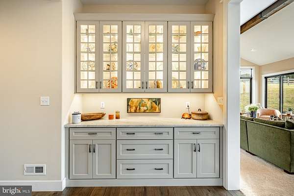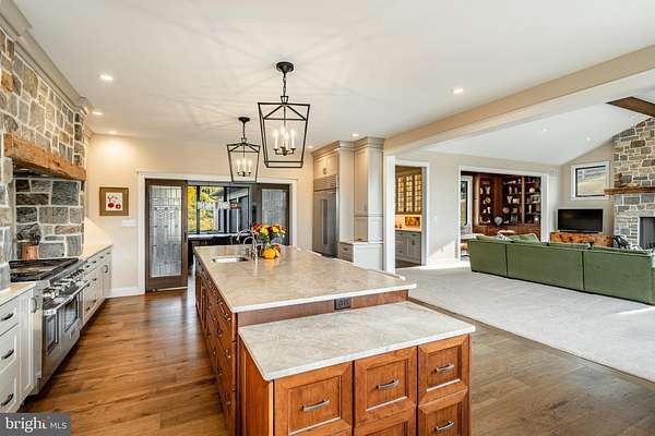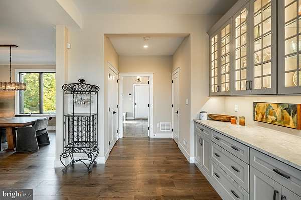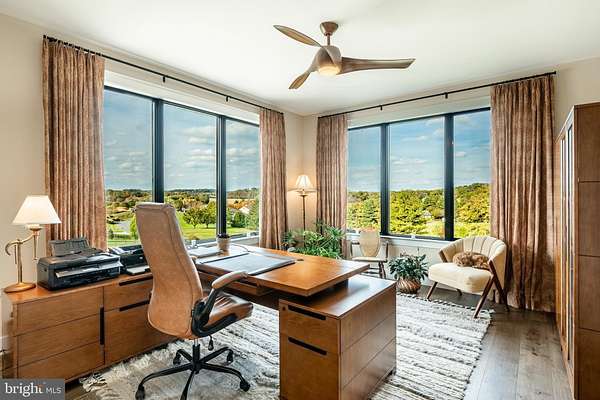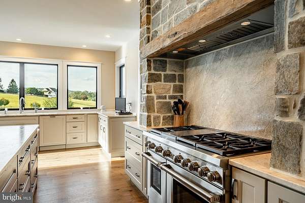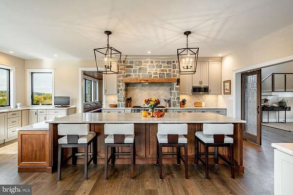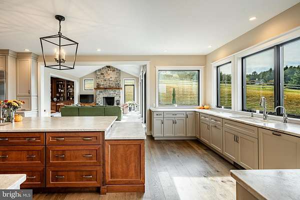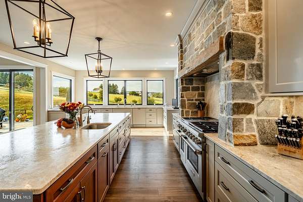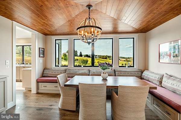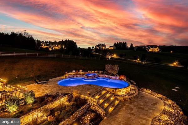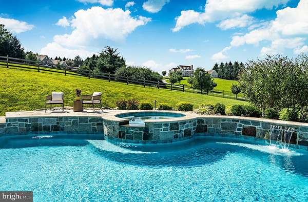 Welcome to 45 Wyndemere Lake Drive, a two years young luxury estate perfectly perched on 6.4 acres in the heart of Chester County, offering unrivaled 180-degree panoramic views of the rolling Chester Springs landscape. Arise viewing the sunrise in the morning and allow the setting sun to wind down your day peacefully as you view it from your kitchen, great room or poolside. This one-of-a-kind residence was meticulously designed to blend modern architecture with biophilic design principles, bringing the serenity of nature indoors through light, texture, and organic materials. Step inside and experience an atmosphere where every detail is intentional and every view feels like a painting. The home's Rocky Mountain-inspired architecture features floor-to-ceiling Anderson windows, hand-selected quarry stone, and warm wood beams that flow seamlessly throughout. The open-concept great room and chef's kitchen form the heart of the home-showcasing leathered granite countertops, a substantial island with a lowered baking counter, top-of-the-line Sub-Zero, Wolf, and Cove appliances, and a butler's pantry with custom cabinetry. A cozy breakfast nook framed by a uniquely designed wood-planked ceiling and built-in seating captures the morning light, while the dining room impresses with grass cloth wallpaper, stained-glass pocket doors inspired by Frank Lloyd Wright, and serene views of the outdoors. This thoughtfully designed floor plan offers two luxurious primary suites, each with private balconies overlooking the pool and sweeping vistas. One suite includes a private office, while another has a connected accessible bath and walk-in showers showcasing universal design at its finest. A first-floor study with custom built-ins and a dedicated yoga room with breathtaking window walls create perfect environments for work or reflection. Every aspect of this home was crafted to engage the senses: from the grass cloth wall coverings and natural wood cabinetry, to the custom hardwood floors and bespoke lighting in chrome, steel, brass, and teak. Even the dog wash room, located off the mudroom and garage, was designed with ergonomic practicality and care in mind. Step outside and discover a backyard oasis that rivals a luxury resort-featuring a freeform infinity-style pool with a built-in hot tub, waterfall, with app- controlled lighting and temperature, multiple seating benches, and a three-tiered patio finished with Turkish tile. Gather around the stone fire pit, stroll through landscaped gardens filled with indigenous plants, and take in the showcase lighting that accentuates the boulders and walkways as day turns to dusk. Additional highlights include a three-car garage with an attached shed, geothermal heating and cooling, five thermostats, a whole-house generator, security system, custom window treatments, and a user-friendly gated entry with an app-controlled electronic gate. The "Vega ManaBloc" water distribution system supplies eco-friendly instant hot water to each fixture in the home. Let your imagination run wild with the walk-out lower level offering endless potential -prewired for a media or sound room, and perfectly suited for a golf simulator, pickleball court, or home theater. This extraordinary home is more than a residence-it's a sensory experience designed to connect you with nature, elevate everyday living, and redefine luxury.