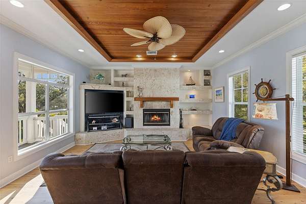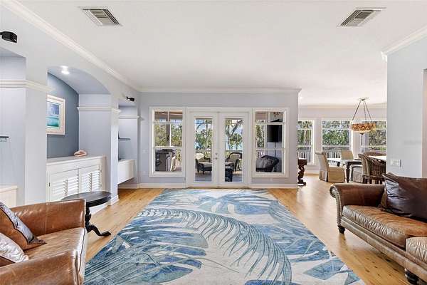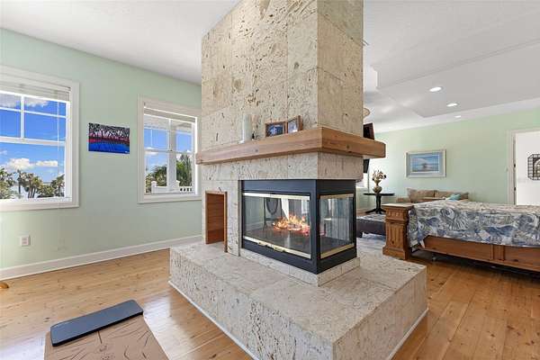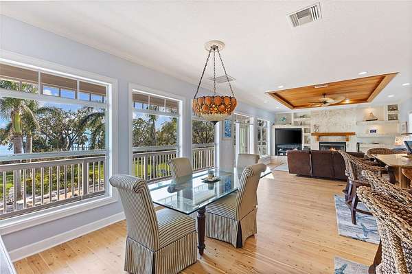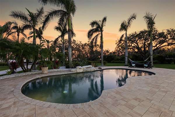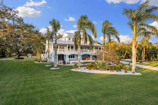 FURNISHED RENTAL. If you've been dreaming of a south facing bayfront home that embodies the laid-back luxury and tropical charm of a Tommy Bahama resort, your search ends here. Welcome to 450 Bayshore Drive, a breathtaking 3-acre bayfront estate nestled in the historic and coveted Terra Ceia Island. The expansive yard has room for tennis and pickleball courts or acreage for a barn and horses. This property offers unparalleled serenity, luxury, and direct access to the Gulf, creating a lifestyle of endless possibilities. This home, built like a fortress, is always prepared and equipped with a gas Generac standby generator. As you drive through the artisan-crafted entry and along the winding driveway through the electronic gate, you'll be greeted by gracefully swaying mature palms and the tranquil beauty of this private oasis. This estate is a boater's paradise, featuring a 600-foot dock on the bay with direct access to the Gulf, two new boat lifts (20,000-lb and 30,000-lb) with moorage for a sailboat or yacht, and a freshwater lake to the rear. Terra Ceia is an aquatic preserve, teeming with redfish, snook, and more, making it a fisherman's haven. The home itself is a work of art, designed to capture breathtaking sunrises and sunsets, sparkling water views, and tropical breezes from all three levels. Inside, you'll find wide-plank pine wood flooring, cypress inlaid ceilings and trays, crown molding, and custom cypress wine closets. Unique lighting crafted by a local artist adds a touch of artistry to every room, while a striking coral fireplace highlights the open living area, creating a warm and inviting ambiance. The chef's kitchen is a culinary dream, featuring European cabinetry, granite countertops, a center island, and top-of-the-line appliances. Large seperate windowed pantry and separate wine room enhances the opportunity for entertaining and the finer things in life. Retreat to the luxurious master suite, which includes a private sitting area with a two-sided coral fireplace, a spa-like master bath, and a large custom walk-in closet. The versatile first level offers endless possibilities, perfect for recreation, a media room, or even a potential in-law suite. Step outside to your own private tropical resort, where a stunning lagoon-style pool with a rock waterfall takes center stage. The poolside tiki bar, equipped with a TV, gas grill, and beer tap, is the ultimate spot for entertaining or relaxing. An outdoor kitchen off the main floor living area features a gas grill and beer tap, making alfresco dining effortless. Unwind in the hot tub while soaking in the panoramic waterviews, or stay active in your spacious private gym. For car enthusiasts, this property is a dream come true. The attached 4-car garage includes a separate golf cart garage bay, while the newly constructed additional detached garage provides a total of 9 garaged parking spots, a workshop area with a beer tap, and a double-height central bay for large vehicles. This space offers ample room for lifts, toys, and all your automotive passions. Located just minutes from I-75, St. Petersburg, Sarasota (SRQ), and Tampa (TPA), this home offers both privacy and convenience. Whether you're boating on the bay, hosting gatherings by the pool, under the cool shade of the majestic mature live oak, or simply enjoying the tranquility of your private estate, this home offers everything you've ever dreamed of and more.