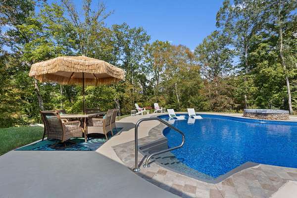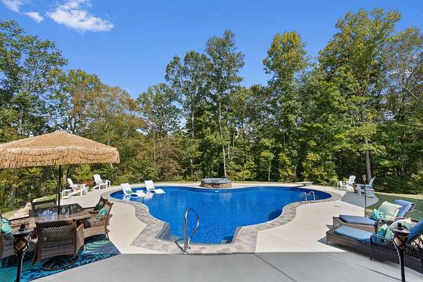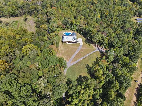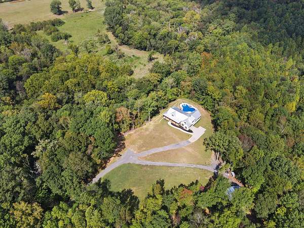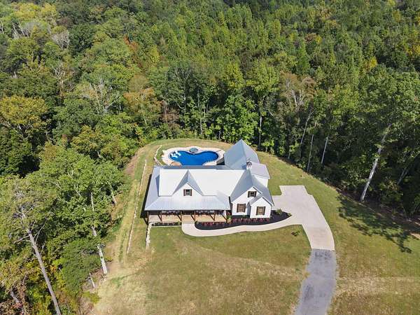 Off-grid custom-built modern farmhouse on 53 acres. No electric bills here! This exquisite estate nestled in the woods is powered with solar panels (not visible from the house) with a backup propane generator. A modern ($22,000) outdoor wood furnace heats the house, the hot water, and the hot tub. The home also has a propane tankless hot water heater that is secondary or backup to the outdoor wood furnace. This property has a secondary geothermal heat system that would only need to be used as a heating source if not utilizing the outdoor wood furnace. The primary cooling is the geothermal system. No expenses were spared as blown foam insulation was used to encapsulate from the walk in crawl space (that seems more like a basement) to the rooftop. A $10,000 water purification system provides clean and tasteful well water. The amazing backyard retreat will be an escape for the new homeowner with an in-ground salt-water lagoon style pool with a sun shelf with two in-pool loungers and a diving board. The salt-water hot tub wrapped in stacked stone cascades into the pool for a peaceful and relaxing sight and sound. A hand-held remote can control the pool and hot tub lighting, heat to the hot tub, and hot tub jets. Many windows with transoms were utilized for an optimal view of the backyard oasis from the dining, living, kitchen, office, and master bedroom. North Mouse Creek is visible from the wrap around porch and from other areas on the 53 acres. Buyers will love the long (approx. 1200+') driveway through the woods leading to this private retreat. This 4 bedroom, 3 bath home will be one you never want to leave! Your guests will notice the custom touches in every room including the tongue and groove ceiling on the wrap around porch; cedar wrapped beams; custom made shutters; shiplap in several rooms; feature walls; and cathedral ceiling with decorative beams in the living room. The kitchen features a large island with quartz countertops with seating for 5, a farmhouse sink in the island, brick backsplash, custom cabinets, an antique pantry door, copper handles and knobs on the wifi programmable stainless appliances, gas stove with double oven, and a built-in microwave that doubles as an additional oven. The large master on the main has a tray ceiling with tongue and groove and a custom barn door leading to the en-suite bath with a claw foot tub, double vanities, pantry, and a walk in tile shower with a rain head and a wall mounted hand held sprayer. Other features include board and batten siding, metal roof, cupola with weathervane, gas fireplace with floor to ceiling stacked stone, gutter guards, and cordless woven window shades (with a wall remote for the shade over the claw foot tub). No storage issues here with 3 walk in closets, a walk in crawl space (that feels more like a basement with lighting and electrical outlets), walk-in attic storage with a full size door and lighting, a 3 bay metal shed that resembles a barn 35' wide x 25' deep, and a double garage with a garage closet. Jump on the ATV for a short ride and you'll find a double carport and solar panels not visible from the house. You will love the many wildlife that are seen regularly on the property including deer and turkey. There are two hunting stands on the property that will convey. Conveniently located 10 minutes to Cleveland, 30 minutes to Chattanooga, and one hour to Knoxville (approximately). Property currently has a greenbelt classification. Do not trespass property without appointment. Advanced notice required. Live cameras on driveway and all over the acreage. Proof of cash funds and government issued ID required to schedule an appointment. Seller is a TN licensed real estate agent. Owner/Agent.