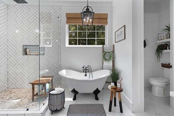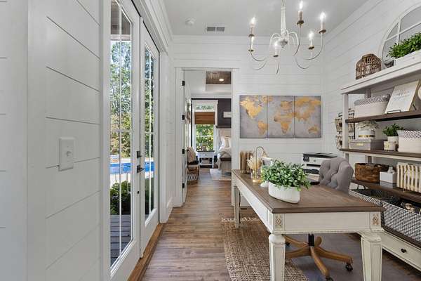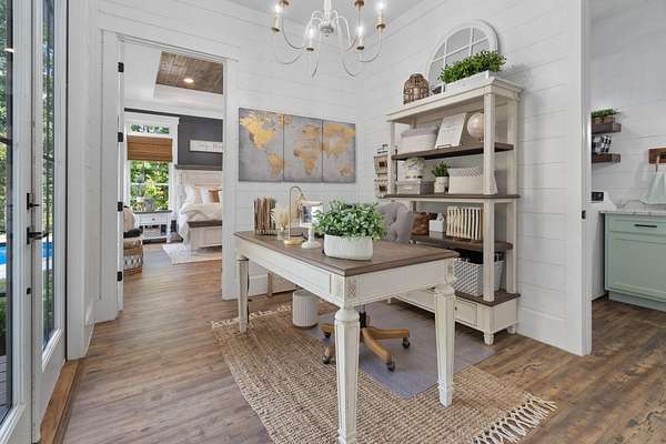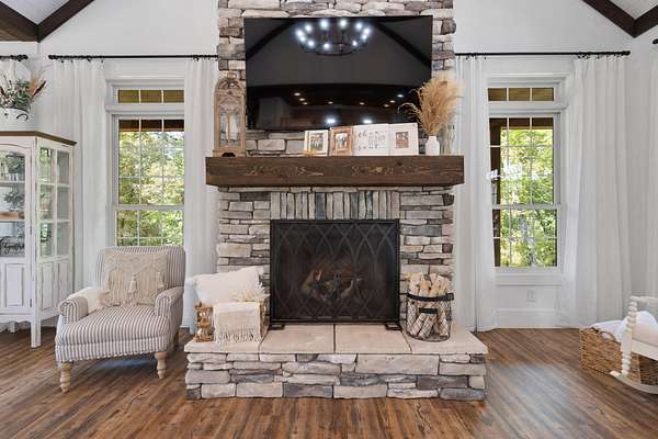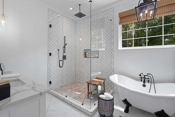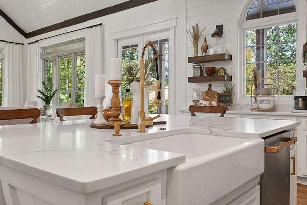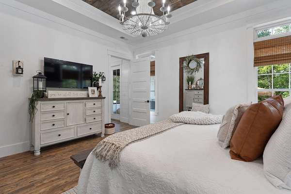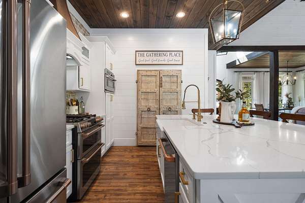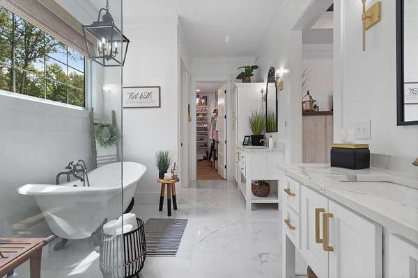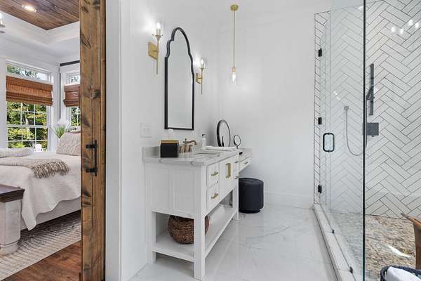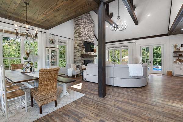 - Bathroom Mirror(s), Beamed Ceilings, Cathedral Ceiling(s), Crown Molding, Double Vanity, High Ceilings, High Speed Internet, Kitchen Island, Open Floorplan, Pantry, Primary Downstairs, Soaking Tub, Stone Counters, Tray Ceiling(s), Walk-In Closet(s), Walk-In Shower