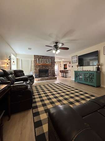Discover homestead-style living on this stunning 10-acre hilled property, where 9 acres of fertile land and a 2,000 sq ft main home await. The main home features 3 bedrooms, 2.5 bathrooms, a dedicated office, a renovated kitchen with granite countertops, recent HVAC, tankless water heater, updated flooring, and fresh paint. Tenants enjoy exclusive access to a 900 sq ft shop with a full bathroom, kitchen, and laundry hookups, plus animal pens, a chicken coop, a garden area, a pond, a storm bunker, and two sheds with concrete flooring. The property supports horses, cattle, or other livestock with ample grazing space and infrastructure for rotational grazing or small-scale ranching, complemented by a designated garden for growing vegetables or herbs. The main home has a private automatic gate, dedicated fencing, and a septic system, with water from a shared well, while utilities like electricity, gas, and internet are tenant responsibilities.