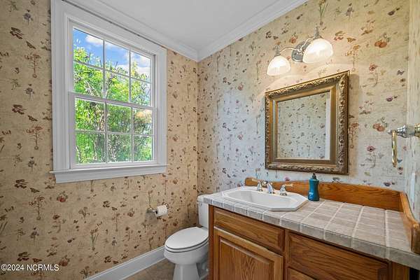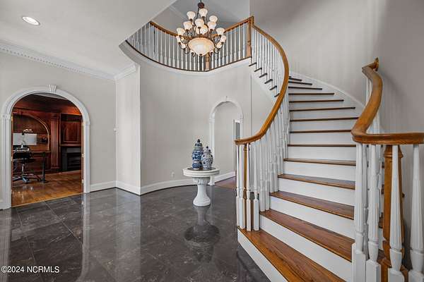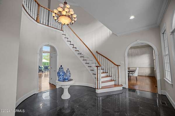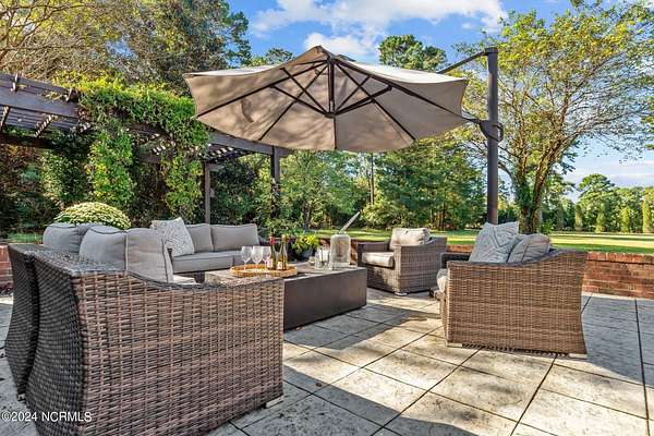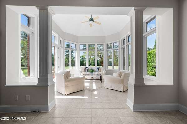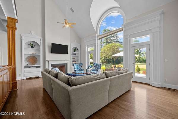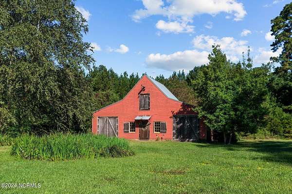 A Southern Living estate at its finest! This custom built home sits on 32 peaceful UNRESTRICTED acres overlooking the golf course and 12th fairway of Washington Yacht and Country Club. So much privacy, yet so close to everything Washington has to offer. Just 10 minute drive to downtown historic Washington waterfront, shopping, restaurants and hospital. NO HOA and NOT in a flood zone! Just 30 minutes to Pitt-Greenville Airport. This home is perfect for entertaining! At the grand entrance, a spacious foyer welcomes you into the home with a spiral staircase that leads to second floor. A custom executive study with fireplace and formal dining room on the other side of the foyer. The great room connects to a lavish custom bar, the gourmet kitchen and sunroom, with windows throughout showcasing the beautiful patio and landscaping surrounding the home. The dedicated scullery featuring additional appliances combined with the separate wet bar area make for great entertaining spaces. The main level primary suite provides the perfect retreat with 2 walk-in closets and a linen closet for ample storage. Upstairs, you will find 3 spacious bedrooms, an impressive bonus/media room with a separate staircase, and an additional flex room. The 2 car garage leads out to the large barn with plenty of storage for equipment, golf cart and toys. Additional workshop, second barn, and walking trail on property. Many more custom features. Easy access to WYCC Marina, restaurant, golf course and pool from property by golf cart! (Must join WYCC to use amenities) Come see this special property and make it yours!