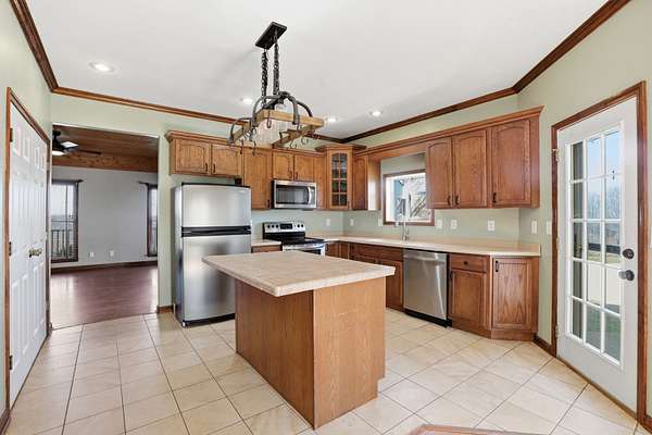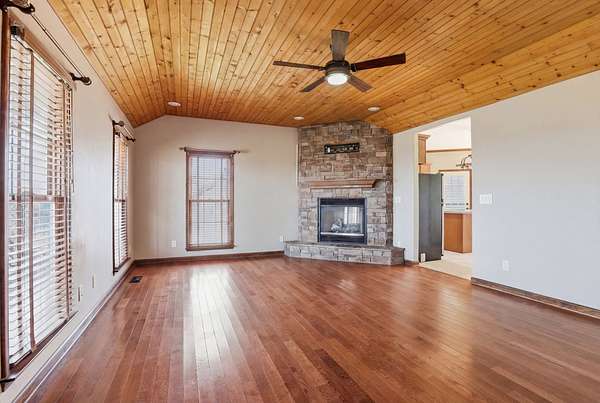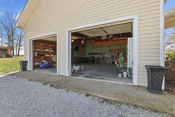 The property is fully equipped for horse owners with fenced pasture, a pond, and a 2-stall stable. A detached two-car garage connects to the home by a covered walkway, and two additional outbuildings provide plenty of space for feed, tack, and storage. There’s even a Woodmaster outdoor stove for added efficiency.